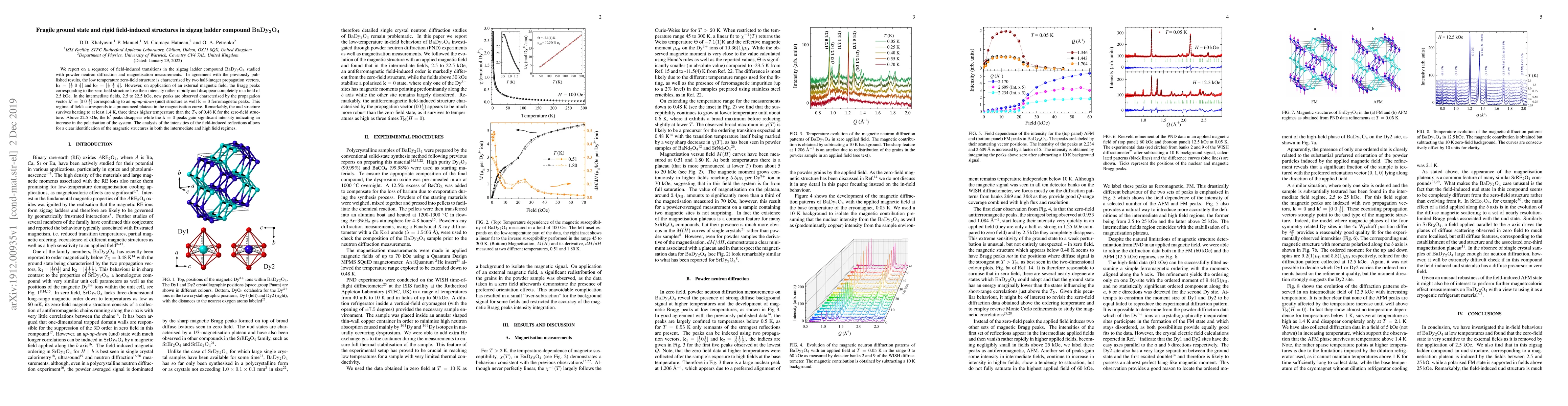 Researchers studied a compound BaDy2O4 under magnetic fields, discovering a fragile ground state that gives way to rigid structures with unique propagation vectors, surviving temperatures up to 1.4K.