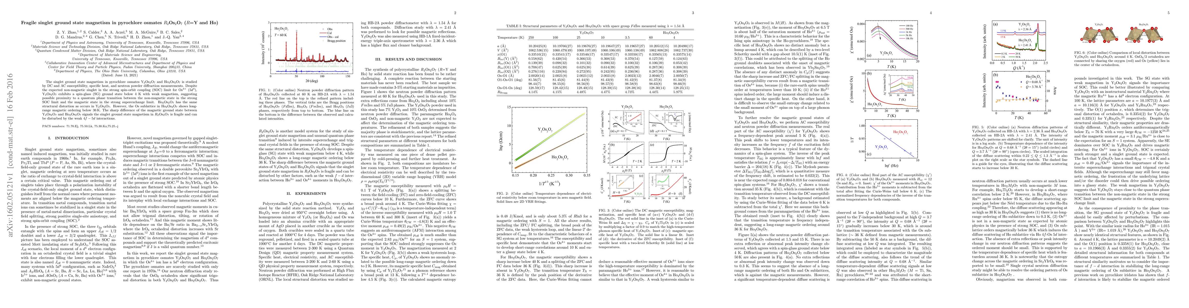 Researchers studied pyrochlore osmates Y2Os2O7 and Ho2Os2O7, finding that despite strong spin-orbit coupling, both compounds exhibit fragile singlet ground state magnetism with significant differences in magnetic behavior below 36K.