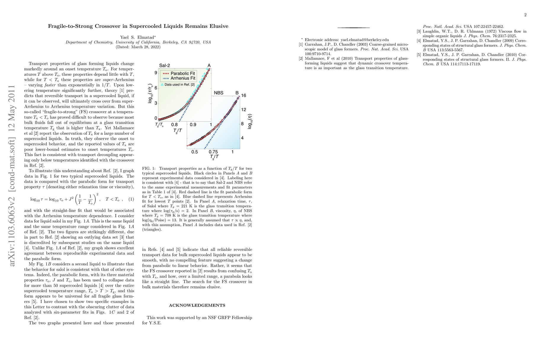 A critique of a recent paper [Mallamace et al PNAS 2010 107 (52) 22457-2246] purporting the existence of a fragile-to-strong crossover in super cooled liquids is presented. It is shown that Mallamace et al have mistaken the onset crossover with the fragile-strong crossover. Moreover, it is shown that supercooled liquid transport data follows the expected parabolic function, without a crossover to another functional form, and that Mallamace et al have obscured this fact by singling out anomalous data as examples.