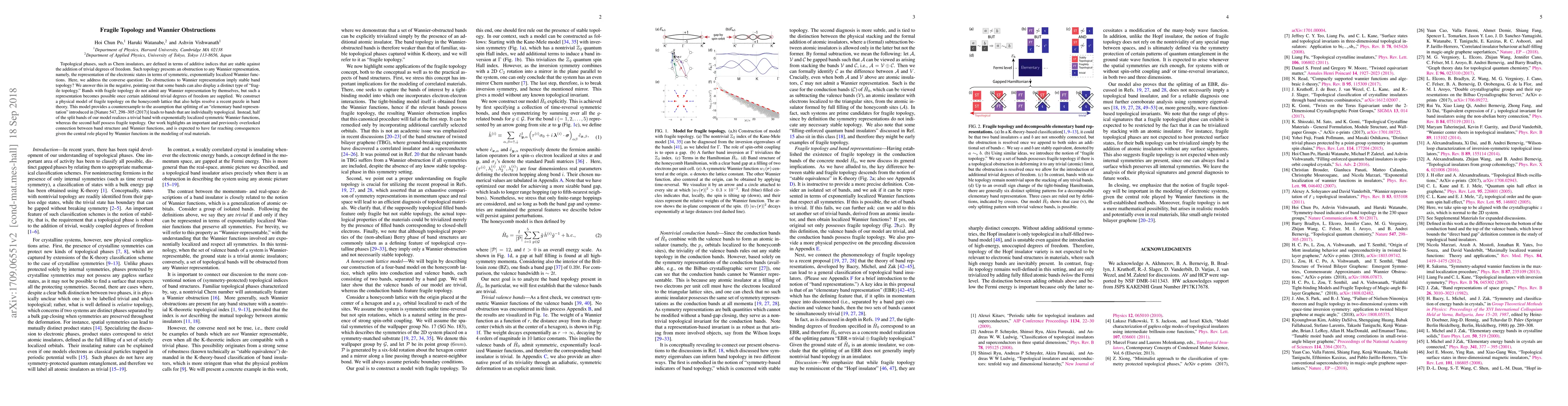 This paper explores the relationship between topological phases and Wannier representations, revealing that obstructions to Wannier representation do not necessarily imply stable band topology. It introduces the concept of "fragile topology," where bands lack Wannier representation alone but can achieve it with additional trivial degrees of freedom, exemplified by a honeycomb lattice model.