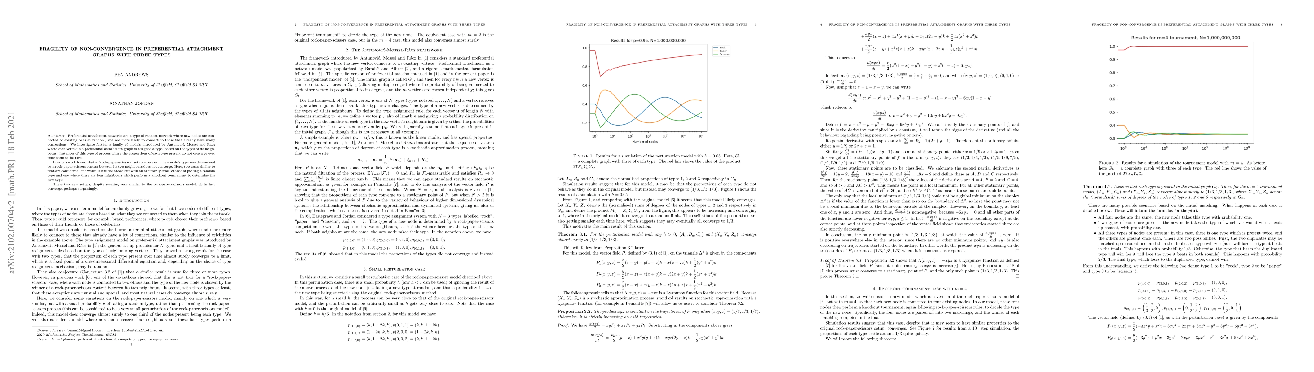 This research investigates preferential attachment graphs with vertex types determined by neighbor types, finding that two new models, despite seeming similar to a non-converging 'rock-paper-scissors' model, actually converge due to small chances of random type selection or knockout tournaments involving four neighbors.