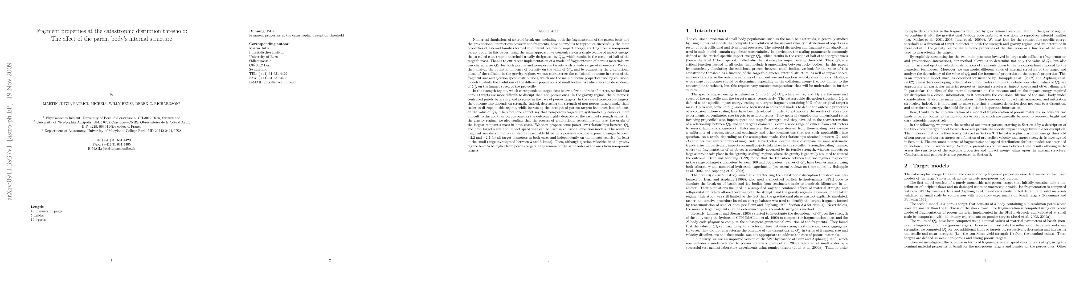 This paper investigates the catastrophic disruption threshold (Q*D) in asteroid break-ups, focusing on the influence of the parent body's internal structure, specifically porosity, on fragmentation properties. It finds that porous targets are harder to disrupt than non-porous ones in the strength regime, while gravity dominates in the gravity regime.
