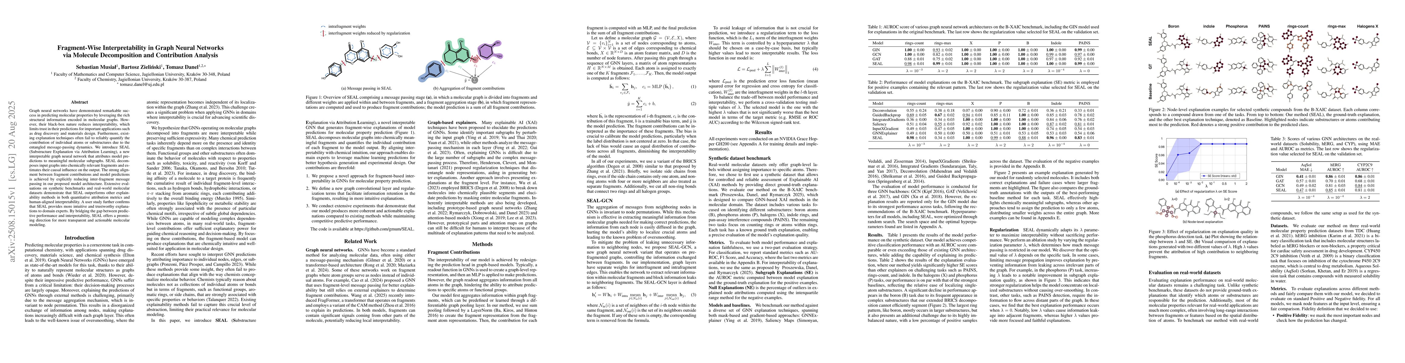 Graph neural networks have demonstrated remarkable success in predicting molecular properties by leveraging the rich structural information encoded in molecular graphs. However, their black-box nature reduces interpretability, which limits trust in their predictions for important applications such as drug discovery and materials design. Furthermore, existing explanation techniques often fail to reliably quantify the contribution of individual atoms or substructures due to the entangled message-passing dynamics. We introduce SEAL (Substructure Explanation via Attribution Learning), a new interpretable graph neural network that attributes model predictions to meaningful molecular subgraphs. SEAL decomposes input graphs into chemically relevant fragments and estimates their causal influence on the output. The strong alignment between fragment contributions and model predictions is achieved by explicitly reducing inter-fragment message passing in our proposed model architecture. Extensive evaluations on synthetic benchmarks and real-world molecular datasets demonstrate that SEAL outperforms other explainability methods in both quantitative attribution metrics and human-aligned interpretability. A user study further confirms that SEAL provides more intuitive and trustworthy explanations to domain experts. By bridging the gap between predictive performance and interpretability, SEAL offers a promising direction for more transparent and actionable molecular modeling.