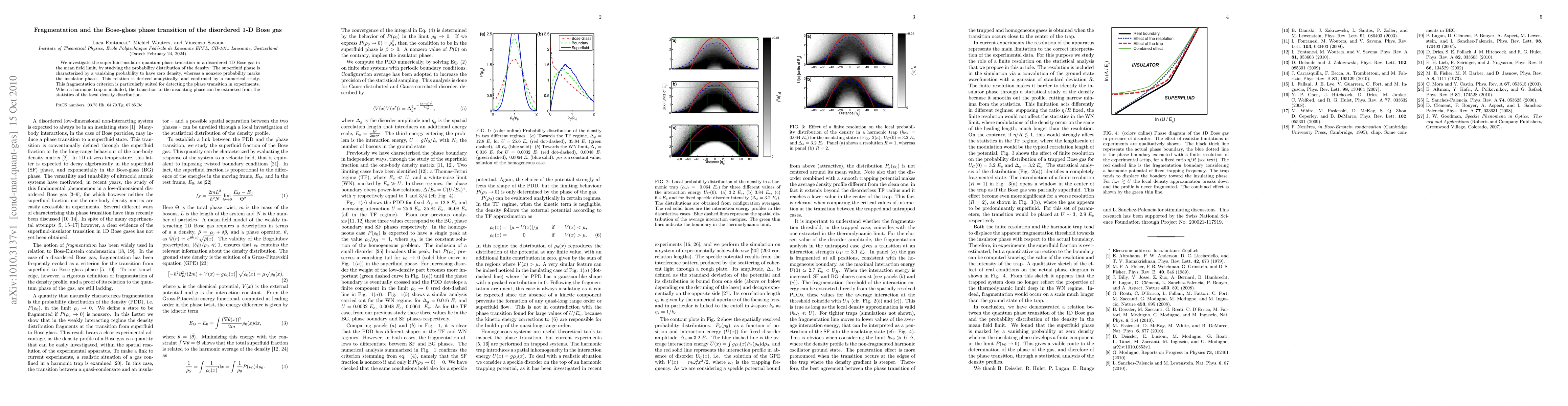 This paper explores the superfluid-insulator phase transition in a disordered 1D Bose gas, deriving an analytical fragmentation criterion that distinguishes between the superfluid and insulating phases based on density probability distributions. Numerical studies confirm the analytical results, highlighting the criterion's experimental applicability.