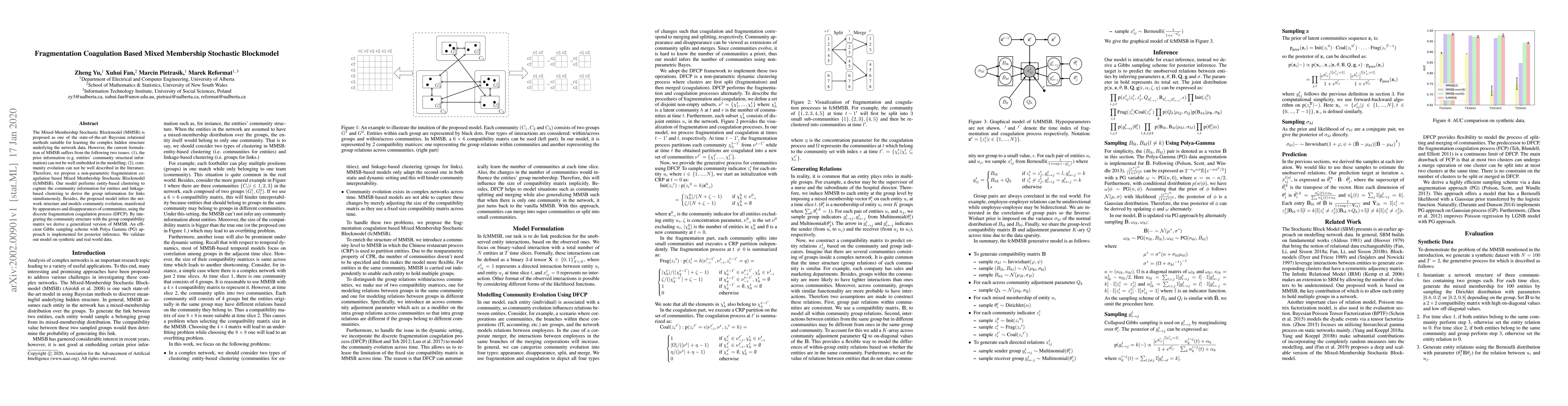 The paper proposes a non-parametric fragmentation coagulation based Mixed Membership Stochastic Blockmodel (fcMMSB) to address prior embedding and community evolution issues in existing MMSB. The fcMMSB model uses entity-based clustering for community information and linkage-based clustering for group information, while employing the discrete fragmentation coagulation process to model community evolution.