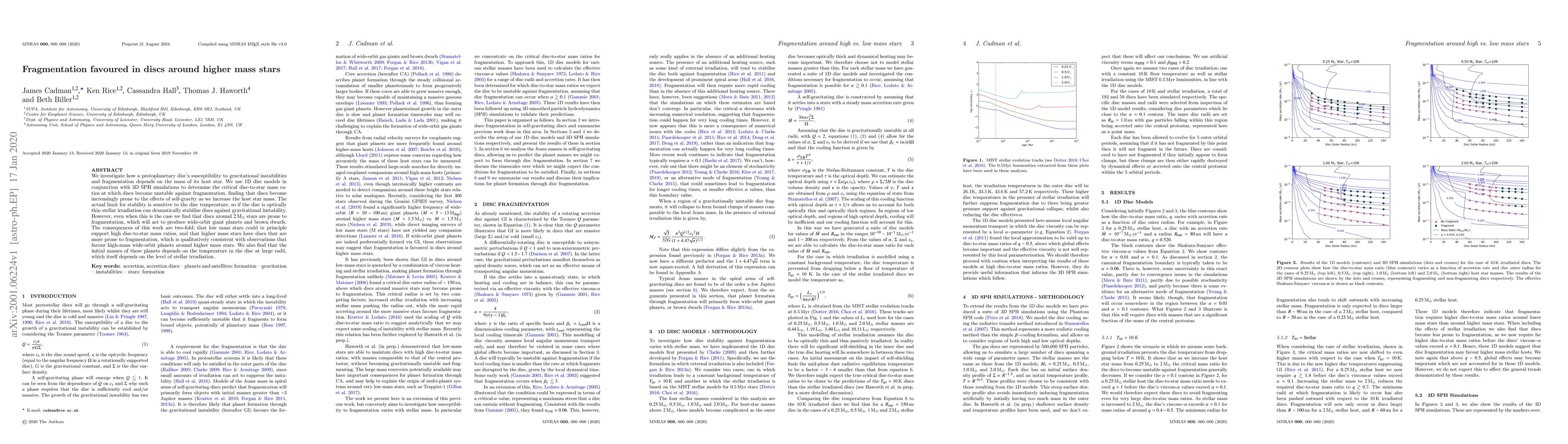 This study finds that protoplanetary discs around higher mass stars are more prone to gravitational fragmentation due to increased self-gravity, leading to the formation of wide-orbit giant planets and brown dwarfs. Disc stability is also influenced by temperature and stellar irradiation, with higher mass stars showing a tendency towards fragmentation.