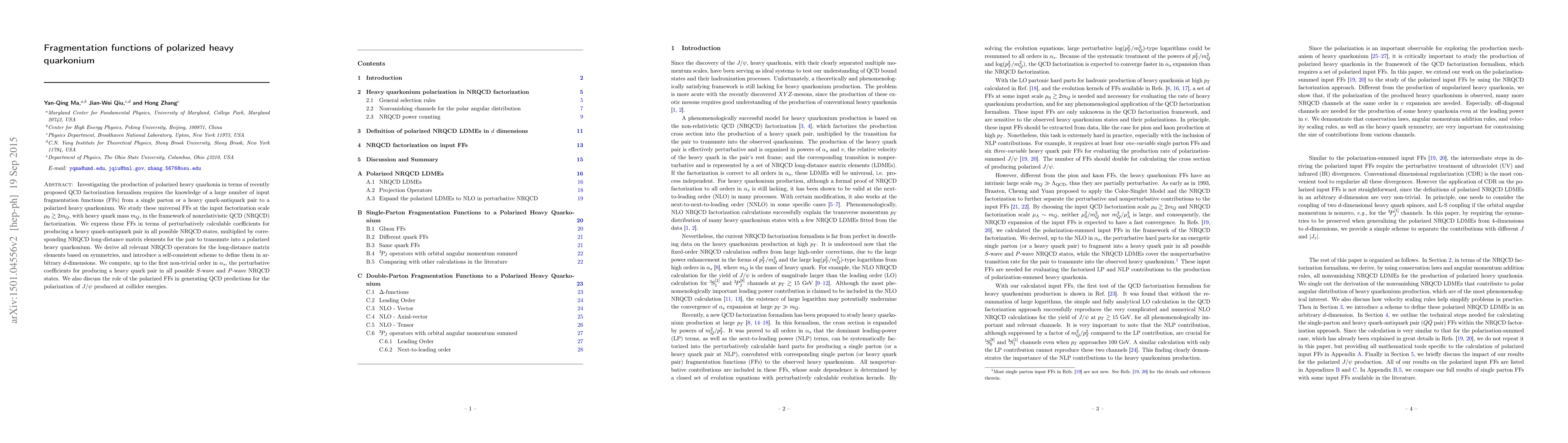 Study of the polarized heavy quarkonium production in recently proposed QCD factorization formalism requires knowledge of a large number of input fragmentation functions (FFs) from a single parton or a heavy quark-antiquark pair to a polarized heavy quarkonium. In this paper, we calculate these FFs at the input scale in terms of nonrelativistic QCD (NRQCD) factorization. We derive all relevant polarized NRQCD long-distance matrix elements based symmetries and propose a self-consistent scheme to define them in arbitrary $d$ dimensions. We then calculate polarized input FFs contributed from all $S$-wave and $P$-wave NRQCD intermediate states. With our calculation of the polarized input FFs, and the partonic hard part available in literatures, the QCD factorization formalism is ready to be applied to polarized heavy quarkonium production.