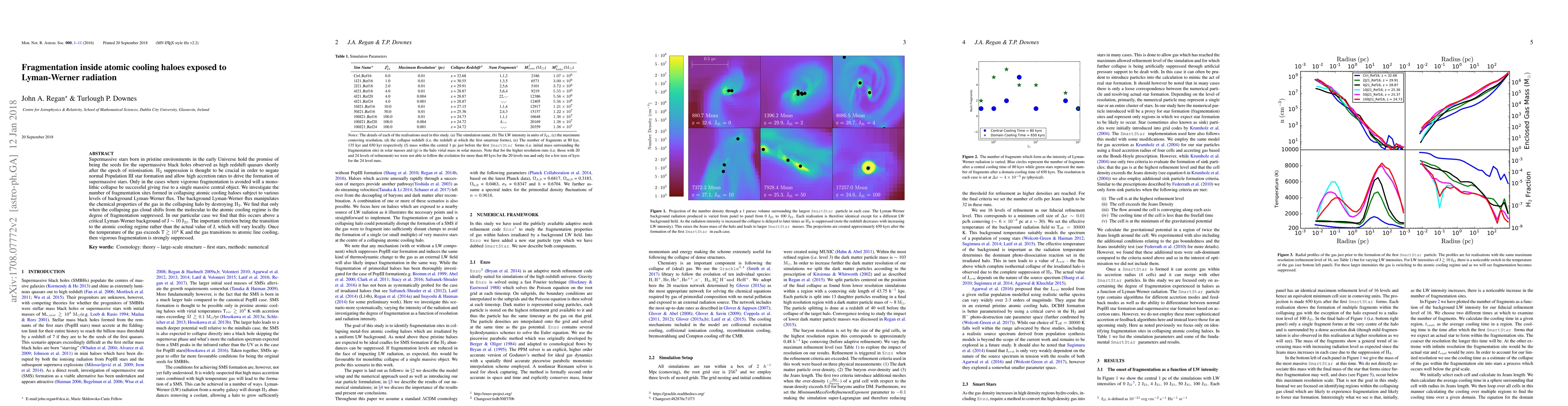 The study investigates the fragmentation inside atomic cooling haloes exposed to Lyman-Werner radiation using high-resolution simulations. It analyzes the impact of varying Lyman-Werner flux intensities on the chemical properties and fragmentation of collapsing gas clouds.
