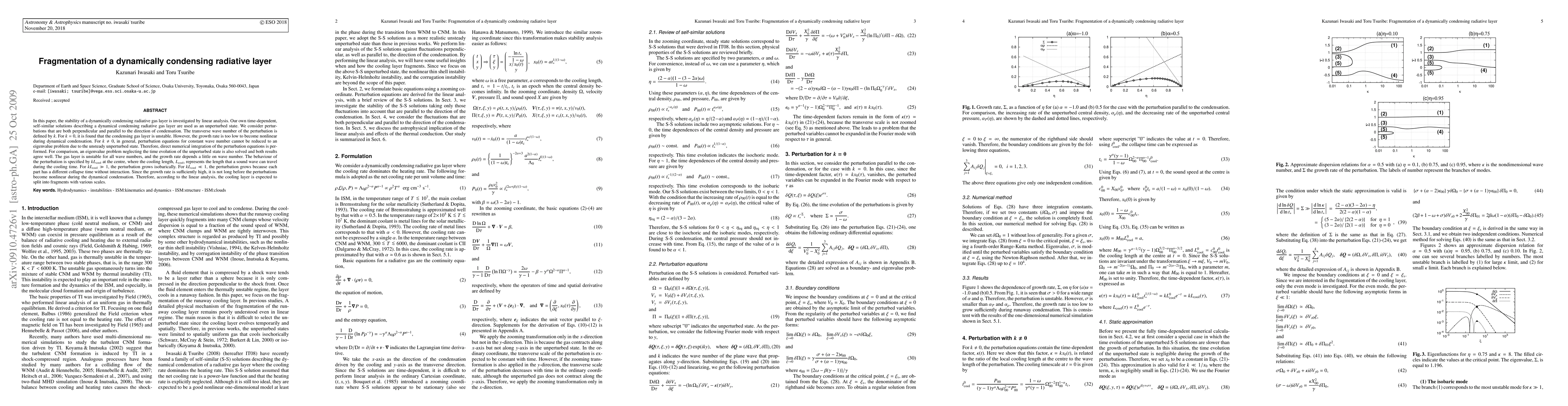In this paper, the stability of a dynamically condensing radiative gas layer is investigated by linear analysis. Our own time-dependent, self-similar solutions describing a dynamical condensing radiative gas layer are used as an unperturbed state. We consider perturbations that are both perpendicular and parallel to the direction of condensation. The transverse wave number of the perturbation is defined by $k$. For $k=0$, it is found that the condensing gas layer is unstable. However, the growth rate is too low to become nonlinear during dynamical condensation. For $k\ne0$, in general, perturbation equations for constant wave number cannot be reduced to an eigenvalue problem due to the unsteady unperturbed state. Therefore, direct numerical integration of the perturbation equations is performed. For comparison, an eigenvalue problem neglecting the time evolution of the unperturbed state is also solved and both results agree well. The gas layer is unstable for all wave numbers, and the growth rate depends a little on wave number. The behaviour of the perturbation is specified by $kL_\mathrm{cool}$ at the centre, where the cooling length, $L_\mathrm{cool}$, represents the length that a sound wave can travel during the cooling time. For $kL_\mathrm{cool}\gg1$, the perturbation grows isobarically. For $kL_\mathrm{cool}\ll1$, the perturbation grows because each part has a different collapse time without interaction. Since the growth rate is sufficiently high, it is not long before the perturbations become nonlinear during the dynamical condensation. Therefore, according to the linear analysis, the cooling layer is expected to split into fragments with various scales.