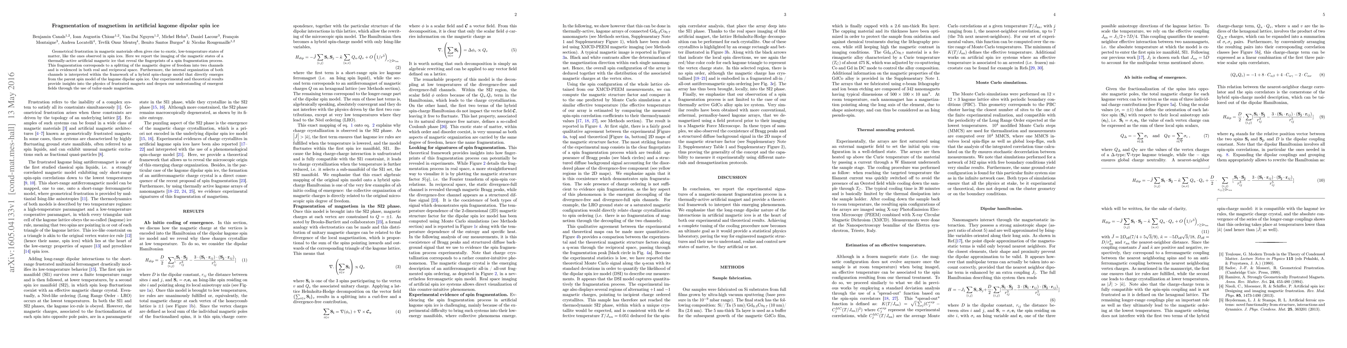 This paper reports the imaging of magnetic states in an artificial kagome dipolar spin ice, revealing a spin fragmentation process splitting magnetism into two channels. The findings are interpreted using a hybrid spin-charge model, offering insights into frustrated magnets and emergent fields in tailor-made magnetism.