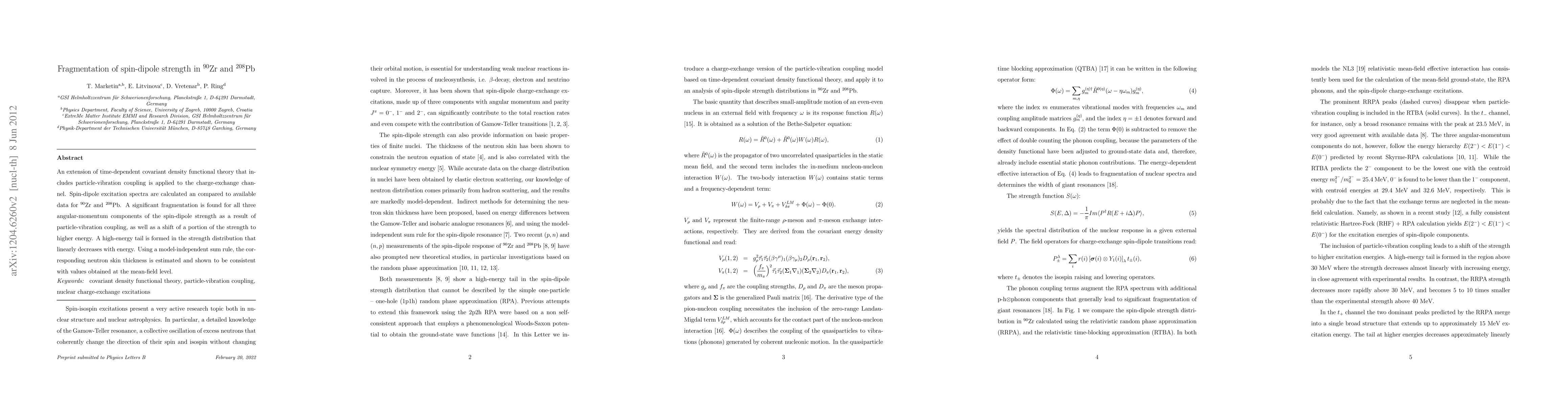 This study applies an extended time-dependent covariant density functional theory to analyze spin-dipole excitation spectra in $^{90}$Zr and $^{208}$Pb, revealing significant fragmentation and energy shifts due to particle-vibration coupling, and estimating consistent neutron skin thickness values.