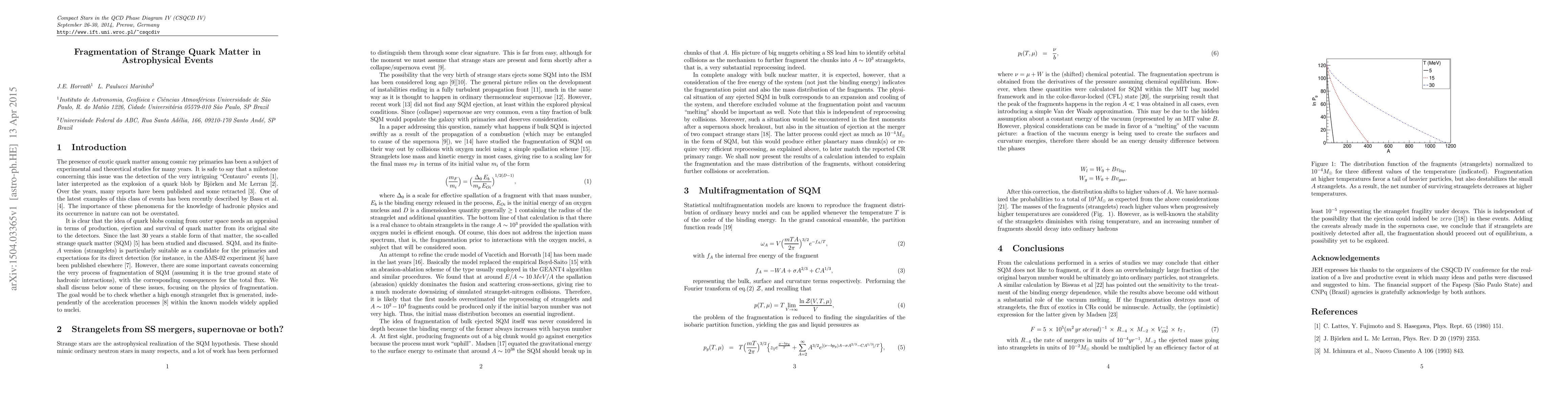 This paper evaluates the fragmentation of strange quark matter in astrophysical events, proposing that statistical multifragmentation models indicate most fragments (strangelets) are unstable baryons. It suggests that the flux of these strangelets reaching Earth may be significantly lower than previously thought, casting doubt on current experimental search efforts.
