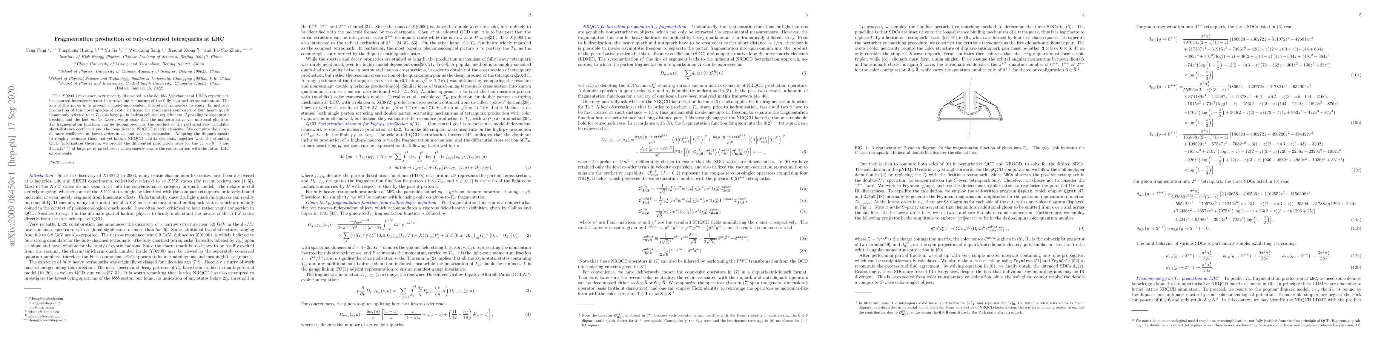 The $X(6900)$ resonance, very recently discovered in the double-$J/\psi$ channel at LHCb experiment, has spurred intensive interest in unravelling the nature of the fully charmed tetraquark state. The aim of this paper is to present a model-independent theoretical framework to study the inclusive production of this novel species of exotic hadrons, the resonances composed of four heavy quark (commonly referred to as $T_{4c}$), at large $p_T$ in hadron collision experiments. Appealing to asymptotic freedom and the fact $m_c\gg \Lambda_{\rm QCD}$, we propose that the nonpertubative yet universal gluon-to-$T_{4c}$ fragmentation function, can be decomposed into the product of the perturbatively calculable short-distance coefficient and the long-distance NRQCD matrix elements. We compute the short-distance coefficient at lowest-order in $\alpha_s$ and velocity expansion. Adopting the diquark ansatz to roughly estimate those not-yet-known NRQCD matrix elements, together with the standard QCD factorization theorem, we predict the differential production rates for the $T_{4c/4b}(0^{++})$ and $T_{4c/4b}(2^{++})$ at large $p_T$ in $pp$ collision, which eagerly awaits the confrontation with the future LHC experiments.