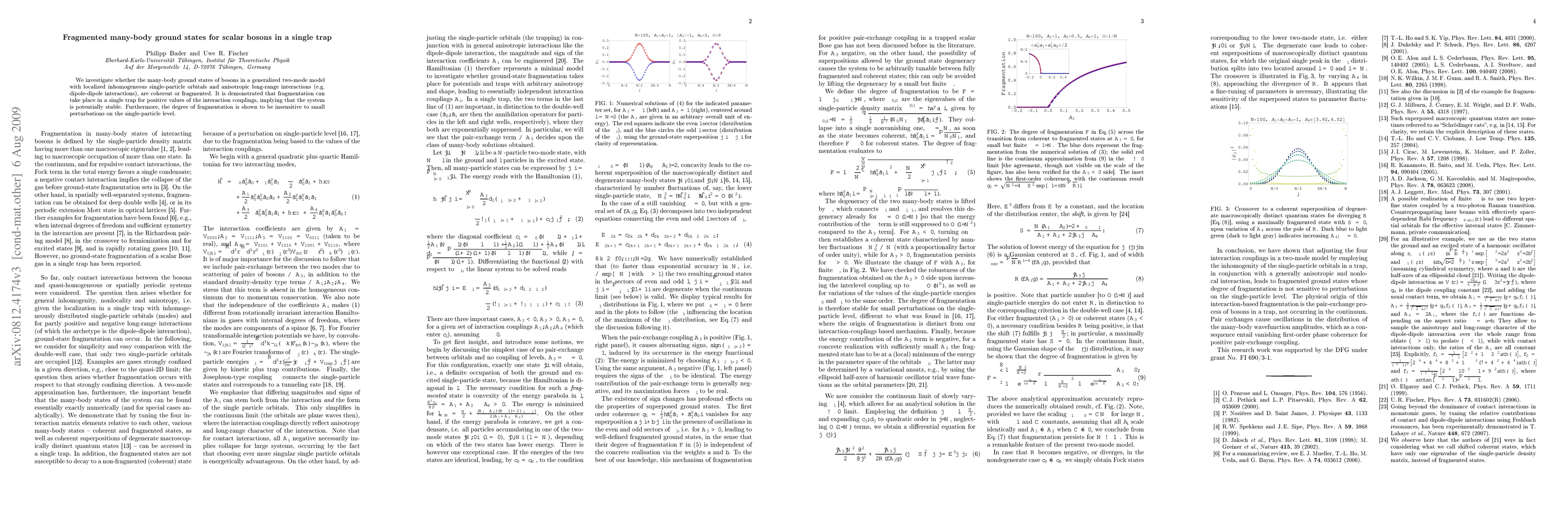 This paper explores the many-body ground states of scalar bosons in a generalized two-mode model with localized orbitals and anisotropic long-range interactions. It finds that fragmentation can occur for positive interaction couplings, indicating potential stability, and that this fragmentation is robust to small perturbations.