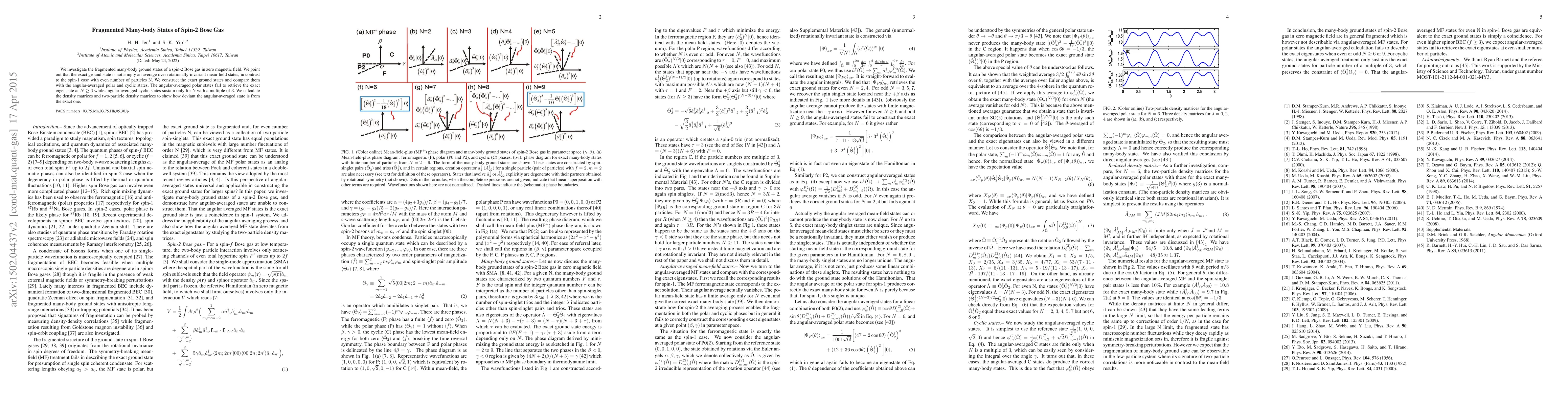 We investigate the fragmented many-body ground states of a spin-2 Bose gas in zero magnetic field.\ We point out that the exact ground state is not simply an average over rotationally-invariant mean-field states, in contrast to the spin-1 case with even number of particles N.\ We construct the exact ground states and compare them with the angular-averaged polar and cyclic states.\ The angular-averaged polar states fail to retrieve the exact eigenstate at $N$ $\ge$ $6$ while angular-averaged cyclic states sustain only for N with a multiple of $3$.\ We calculate the density matrices and two-particle density matrices to show how deviant the angular-averaged state is from the exact one.