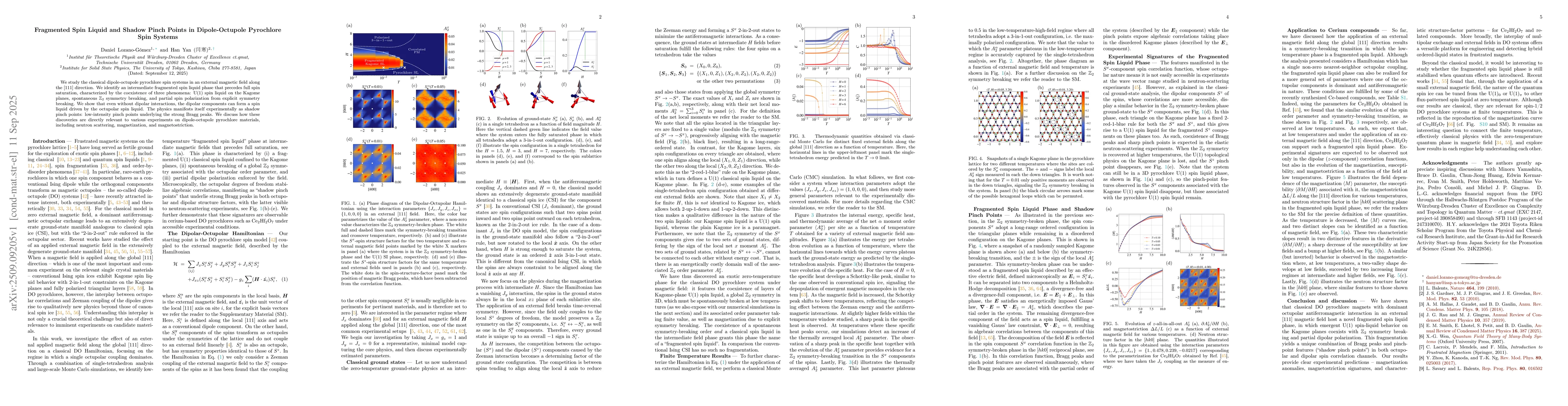 We study the classical dipole-octupole pyrochlore spin systems in an external magnetic field along the $[111]$ direction. We identify an intermediate fragmented spin liquid phase that precedes full spin saturation, characterized by the coexistence of three phenomena: U(1) spin liquid on the Kagome planes, spontaneous $\mathbb{Z}_2$ symmetry breaking, and partial spin polarization from explicit symmetry breaking. We show that even without dipolar interactions, the dipolar components can form a spin liquid driven by the octupolar spin liquid. The physics manifests itself experimentally as shadow pinch points: low-intensity pinch points underlying the strong Bragg peaks. We discuss how these discoveries are directly relevant to various experiments on dipole-octupole pyrochlore materials, including neutron scattering, magnetization, and magnetostriction.