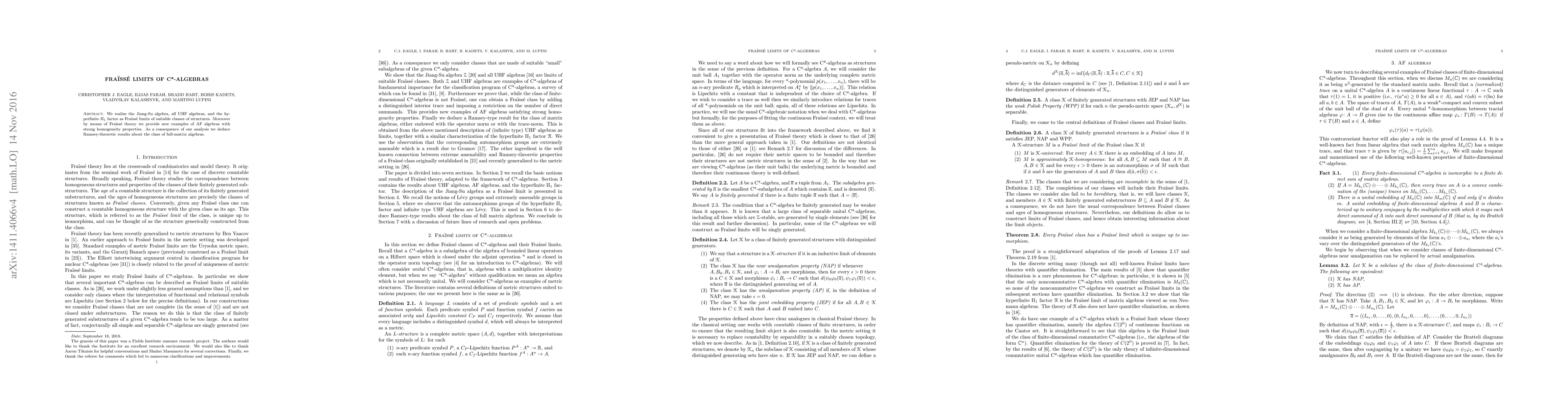 This paper demonstrates that the Jiang-Su algebra, UHF algebras, and the hyperfinite II$_{1}$ factor can be realized as Fraissé limits of respective classes, using Fraissé theory to introduce AF algebras with strong homogeneity properties and derive Ramsey-theoretic results on full-matrix algebras.
