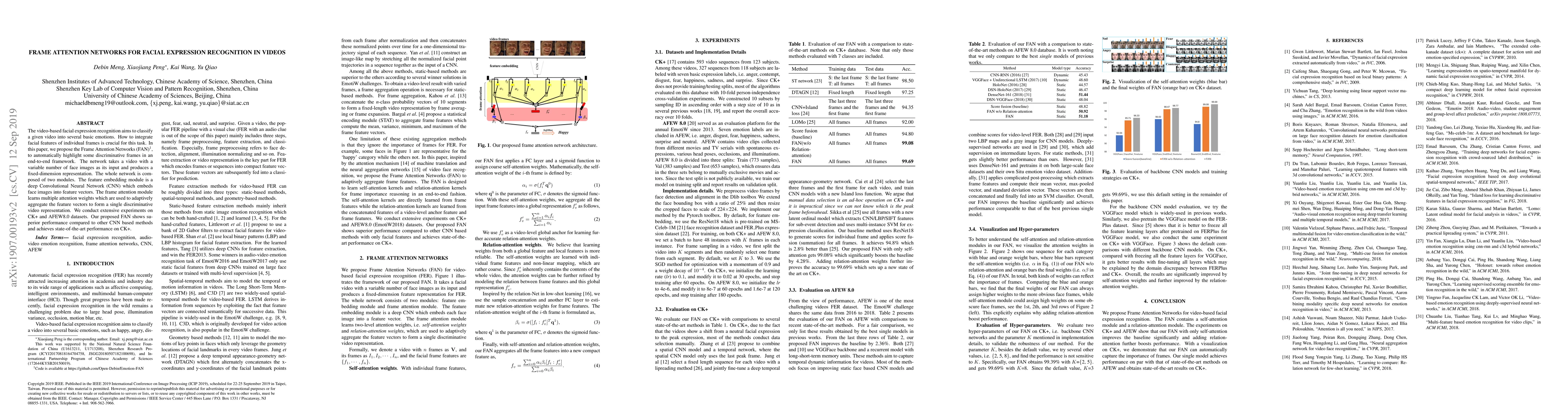 The video-based facial expression recognition aims to classify a given video into several basic emotions. How to integrate facial features of individual frames is crucial for this task. In this paper, we propose the Frame Attention Networks (FAN), to automatically highlight some discriminative frames in an end-to-end framework. The network takes a video with a variable number of face images as its input and produces a fixed-dimension representation. The whole network is composed of two modules. The feature embedding module is a deep Convolutional Neural Network (CNN) which embeds face images into feature vectors. The frame attention module learns multiple attention weights which are used to adaptively aggregate the feature vectors to form a single discriminative video representation. We conduct extensive experiments on CK+ and AFEW8.0 datasets. Our proposed FAN shows superior performance compared to other CNN based methods and achieves state-of-the-art performance on CK+.
