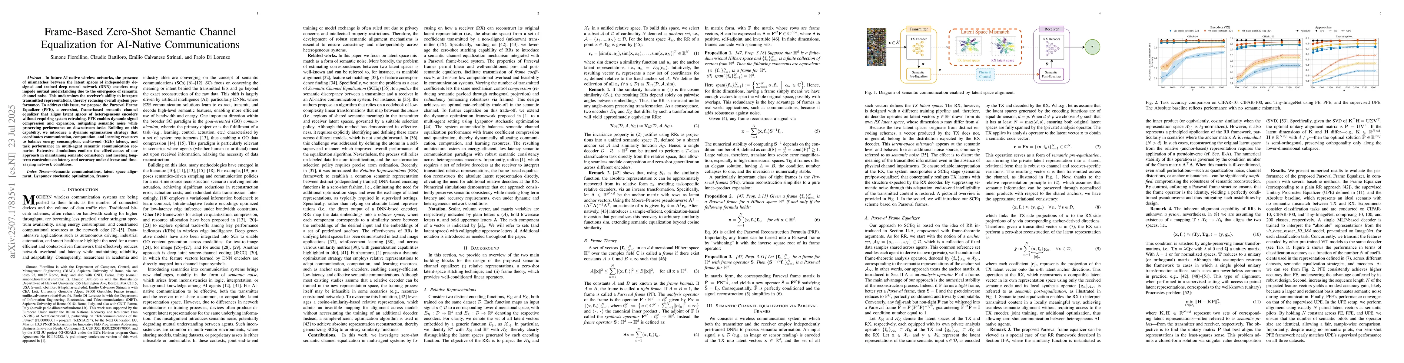 In future AI-native wireless networks, the presence of mismatches between the latent spaces of independently designed and trained deep neural network (DNN) encoders may impede mutual understanding due to the emergence of semantic channel noise. This undermines the receiver's ability to interpret transmitted representations, thereby reducing overall system performance. To address this issue, we propose the Parseval Frame Equalizer (PFE), a zero-shot, frame-based semantic channel equalizer that aligns latent spaces of heterogeneous encoders without requiring system retraining. PFE enables dynamic signal compression and expansion, mitigating semantic noise while preserving performance on downstream tasks. Building on this capability, we introduce a dynamic optimization strategy that coordinates communication, computation, and learning resources to balance energy consumption, end-to-end (E2E) latency, and task performance in multi-agent semantic communication scenarios. Extensive simulations confirm the effectiveness of our approach in maintaining semantic consistency and meeting long-term constraints on latency and accuracy under diverse and time-varying network conditions.