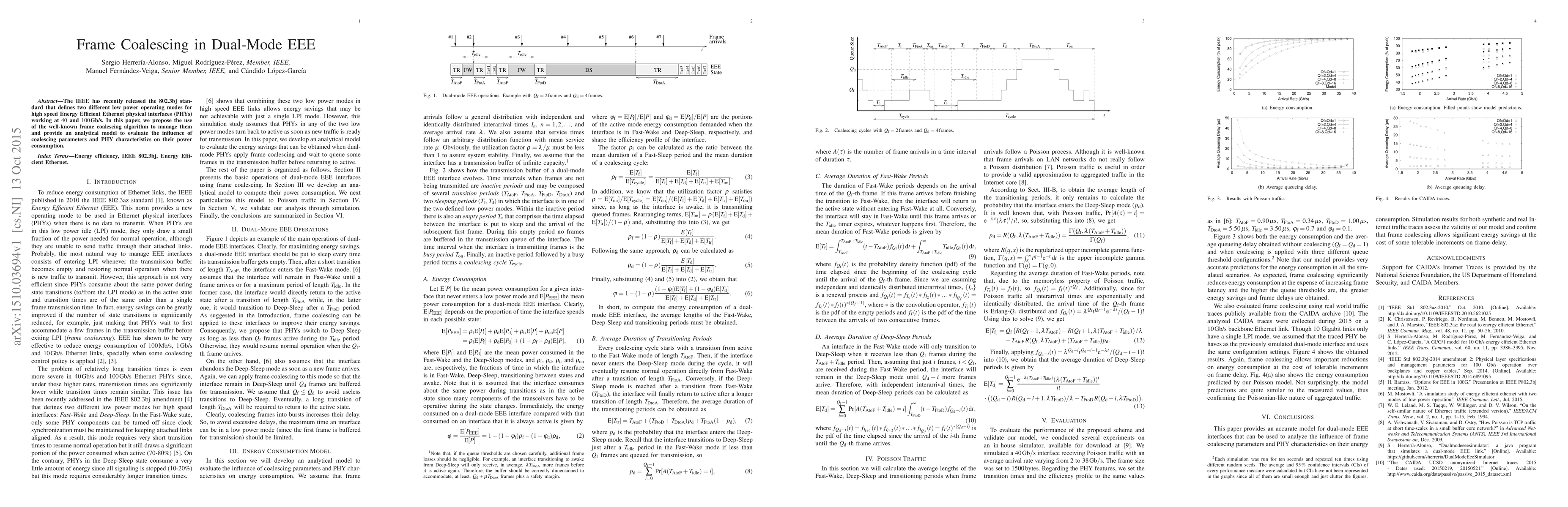 The IEEE has recently released the 802.3bj standard that defines two different low power operating modes for high speed Energy Efficient Ethernet physical interfaces (PHYs) working at 40 and 100 Gb/s. In this paper, we propose the use of the well-known frame coalescing algorithm to manage them and provide an analytical model to evaluate the influence of coalescing parameters and PHY characteristics on their power consumption.