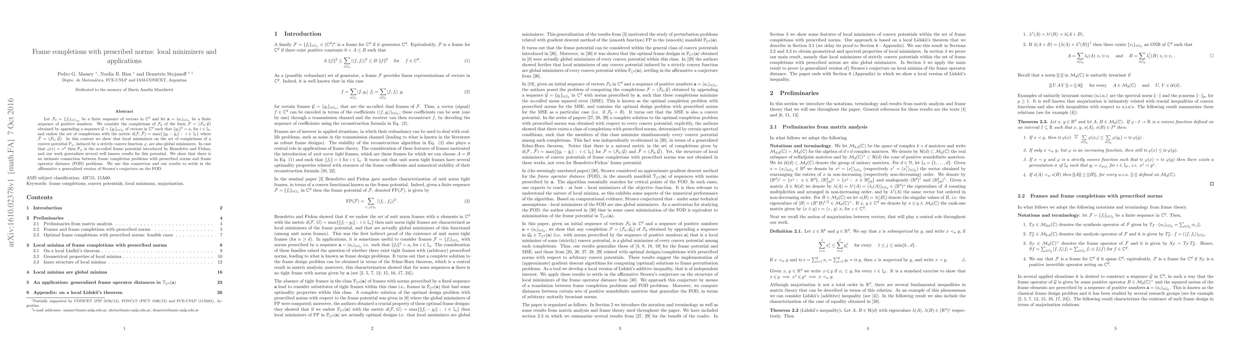 This paper investigates completions of given vector sequences with prescribed norms and proves that local minimizers of a convex potential on such completions are global minimizers. It connects frame completion problems with prescribed norms to frame operator distance problems, thereby resolving a generalized version of Strawn's conjecture.