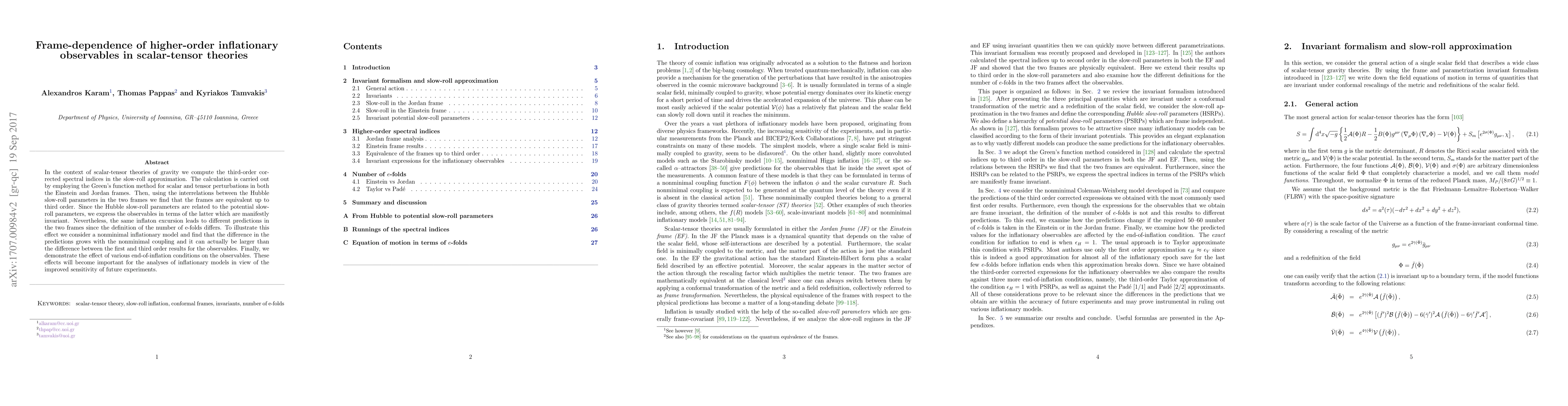 This paper investigates third-order inflationary observables in scalar-tensor theories, comparing results from the Einstein and Jordan frames. It shows that while the frames are equivalent up to third order, different predictions arise due to differing definitions of e-folds, with significant differences in nonminimal coupling scenarios.