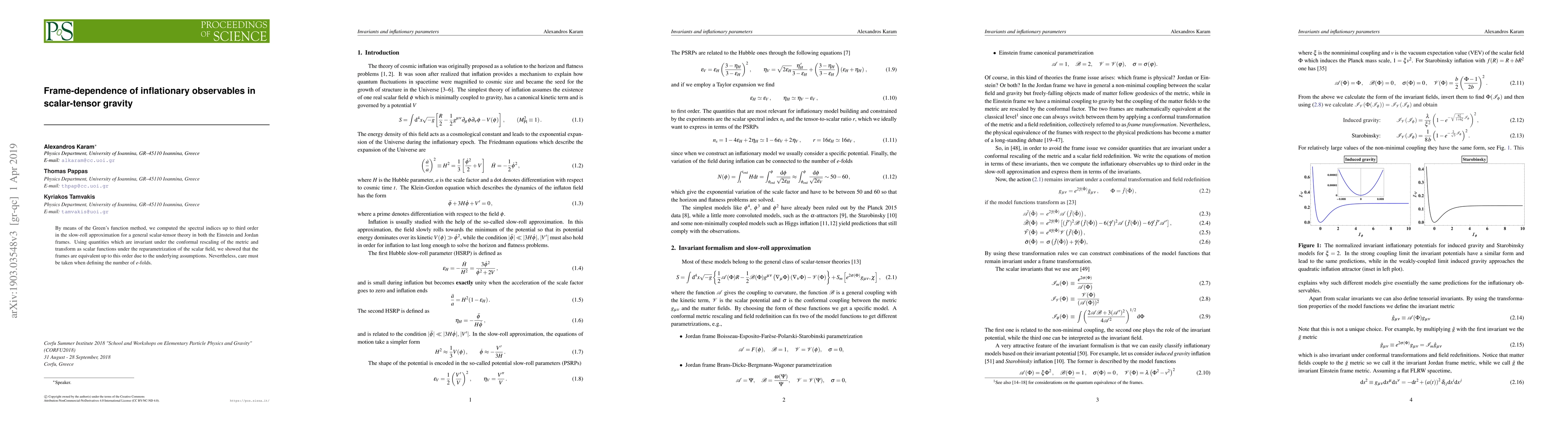 This paper investigates the equivalence of inflationary observables in scalar-tensor gravity within the Einstein and Jordan frames using the Green's function method. It demonstrates that spectral indices up to third order are frame-independent under the slow-roll approximation, though caution is advised when defining the number of $e$-folds.