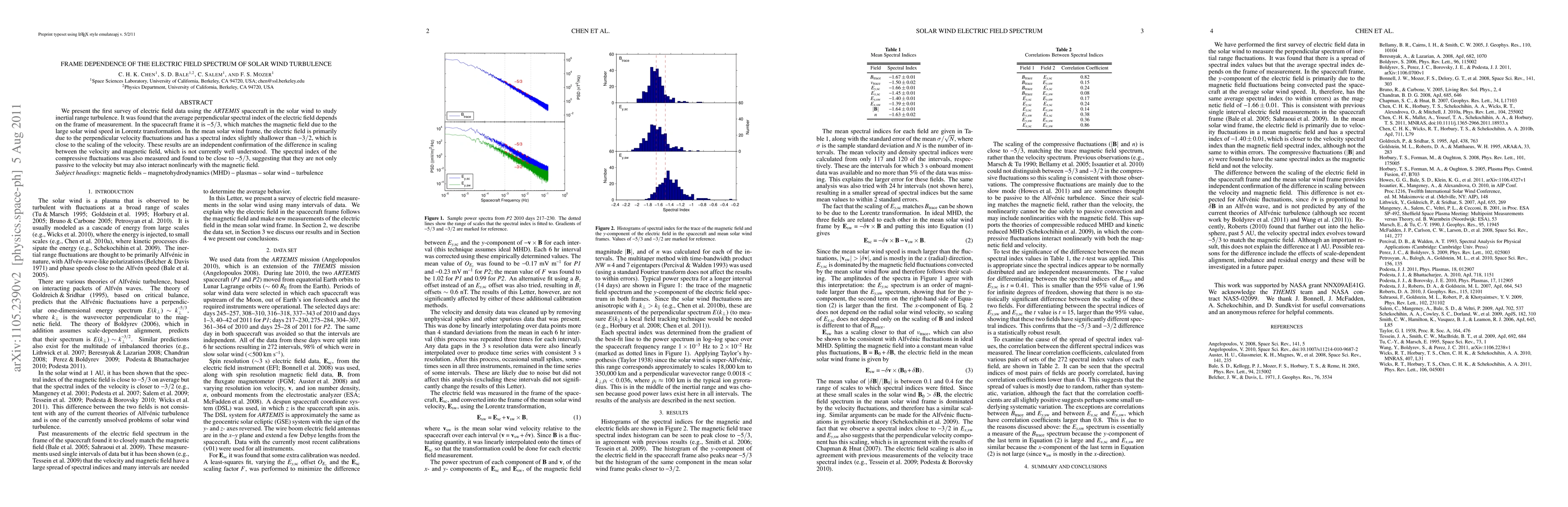 This study investigates solar wind turbulence using ARTEMIS spacecraft data, revealing that the electric field's spectral index varies with measurement frame. In the spacecraft frame, it aligns with the magnetic field at -5/3, while in the solar wind frame, it is slightly shallower than -3/2, indicating a difference in scaling between velocity and magnetic field fluctuations.