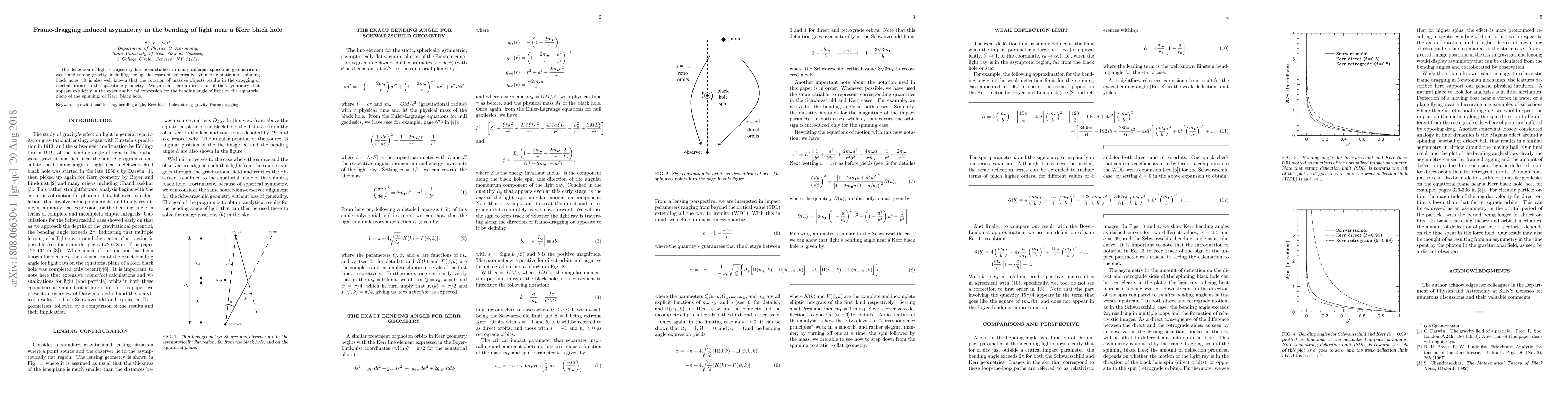 The deflection of light's trajectory has been studied in many different spacetime geometries in weak and strong gravity, including the special cases of spherically symmetric static and spinning black holes. It is also well known that the rotation of massive objects results in the dragging of inertial frames in the spacetime geometry. We present here a discussion of the asymmetry that appears explicitly in the exact analytical expression for the bending angle of light on the equatorial plane of the spinning, or Kerr, black hole.
