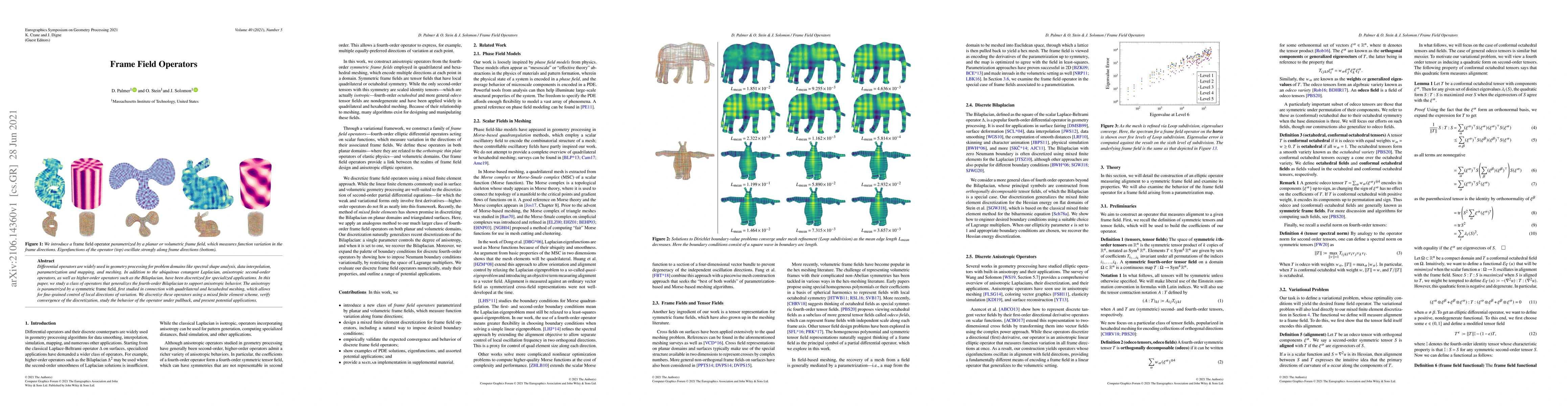 This paper introduces a class of generalized fourth-order frame field operators that extend the Bilaplacian for anisotropic behavior, controlled by a symmetric frame field. The authors discretize these operators using a mixed finite element scheme, verify their convergence, and explore their applications in geometry processing.