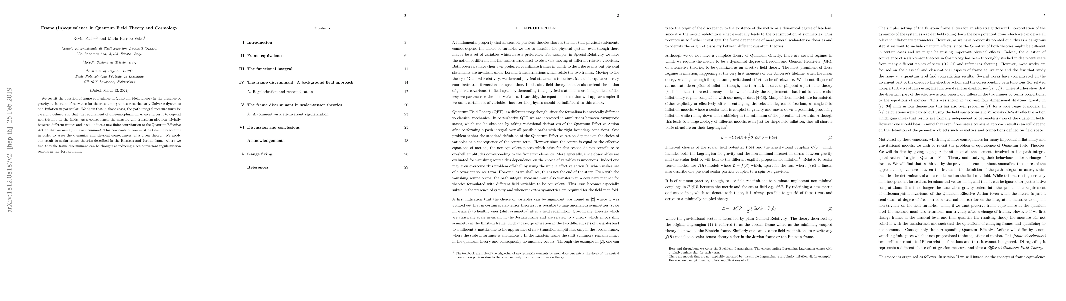 We revisit the question of frame equivalence in Quantum Field Theory in the presence of gravity, a situation of relevance for theories aiming to describe the early Universe dynamics and Inflation in particular. We show that in those cases, the path integral measure must be carefully defined and that the requirement of diffeomorphism invariance forces it to depend non-trivially on the fields. As a consequence, the measure will transform also non-trivially between different frames and it will induce a new finite contribution to the Quantum Effective Action that we name frame discriminant. This new contribution must be taken into account in order to asses the dynamics and physical consequences of a given theory. We apply our result to scalar-tensor theories described in the Einstein and Jordan frame, where we find that the frame discriminant can be thought as inducing a scale-invariant regularization scheme in the Jordan frame.