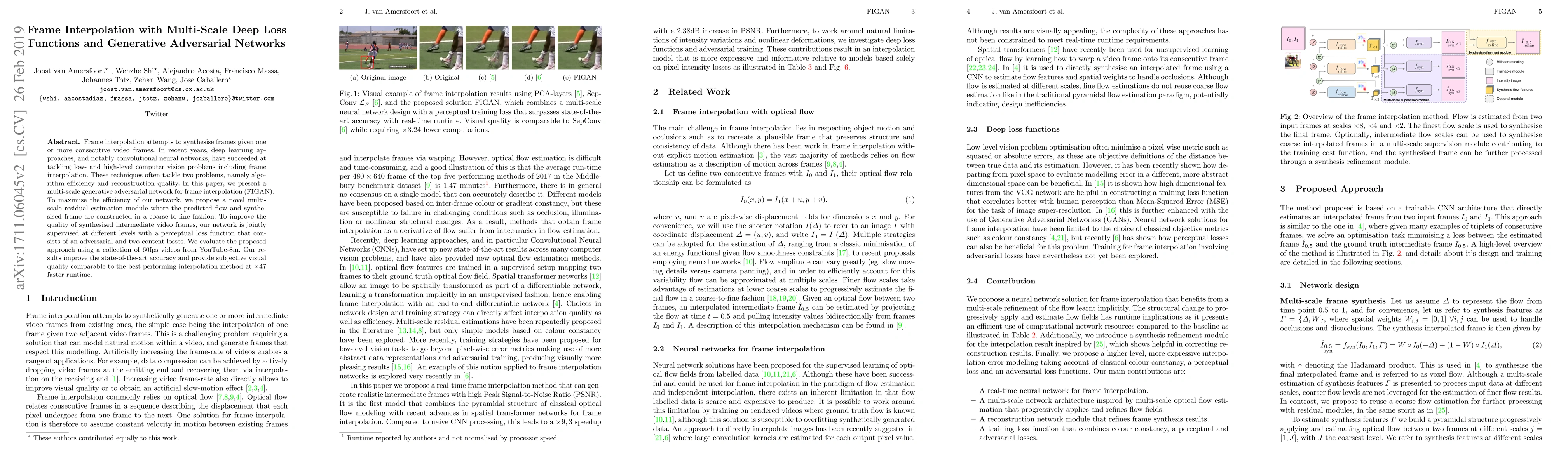Frame interpolation attempts to synthesise frames given one or more consecutive video frames. In recent years, deep learning approaches, and notably convolutional neural networks, have succeeded at tackling low- and high-level computer vision problems including frame interpolation. These techniques often tackle two problems, namely algorithm efficiency and reconstruction quality. In this paper, we present a multi-scale generative adversarial network for frame interpolation (\mbox{FIGAN}). To maximise the efficiency of our network, we propose a novel multi-scale residual estimation module where the predicted flow and synthesised frame are constructed in a coarse-to-fine fashion. To improve the quality of synthesised intermediate video frames, our network is jointly supervised at different levels with a perceptual loss function that consists of an adversarial and two content losses. We evaluate the proposed approach using a collection of 60fps videos from YouTube-8m. Our results improve the state-of-the-art accuracy and provide subjective visual quality comparable to the best performing interpolation method at x47 faster runtime.