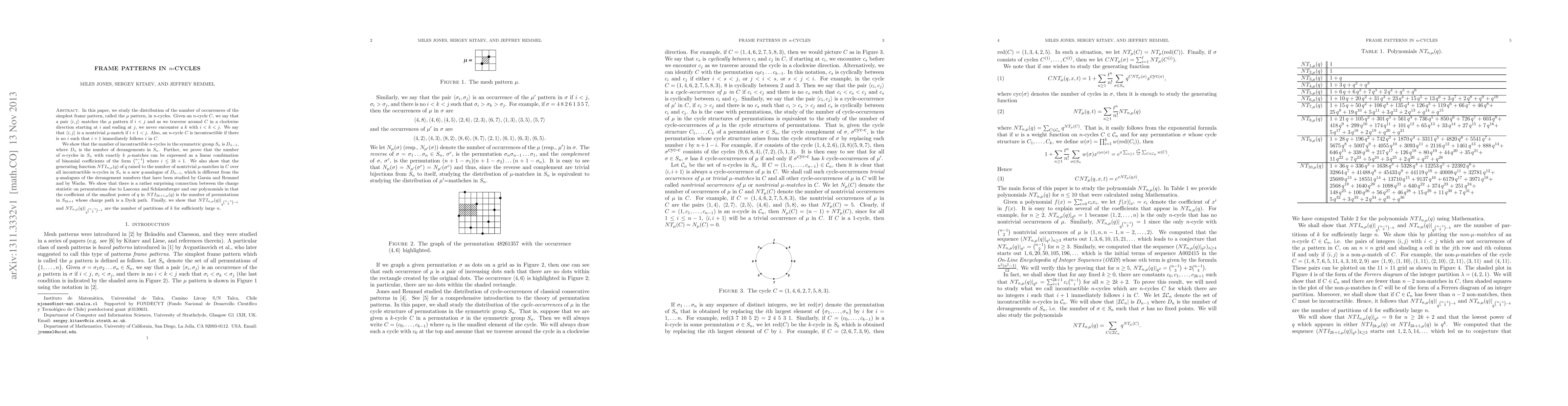 In this paper, we study the distribution of the number of occurrences of the simplest frame pattern, called the $\mu$ pattern, in $n$-cycles. Given an $n$-cycle $C$, we say that a pair $\langle i,j \rangle$ matches the $\mu$ pattern if $i < j$ and as we traverse around $C$ in a clockwise direction starting at $i$ and ending at $j$, we never encounter a $k$ with $i < k < j$. We say that $ \langle i,j \rangle$ is a nontrivial $\mu$-match if $i+1 < j$. Also, an $n$-cycle $C$ is incontractible if there is no $i$ such that $i+1$ immediately follows $i$ in $C$. We show that the number of incontractible $n$-cycles in the symmetric group $S_n$ is $D_{n-1}$, where $D_n$ is the number of derangements in $S_n$. Further, we prove that the number of $n$-cycles in $S_n$ with exactly $k$ $\mu$-matches can be expressed as a linear combination of binomial coefficients of the form $\binom{n-1}{i}$ where $i \leq 2k+1$. We also show that the generating function $NTI_{n,\mu}(q)$ of $q$ raised to the number of nontrivial $\mu$-matches in $C$ over all incontractible $n$-cycles in $S_n$ is a new $q$-analogue of $D_{n-1}$, which is different from the $q$-analogues of the derangement numbers that have been studied by Garsia and Remmel and by Wachs. We show that there is a rather surprising connection between the charge statistic on permutations due to Lascoux and Sch\"uzenberger and our polynomials in that the coefficient of the smallest power of $q$ in $NTI_{2k+1,\mu}(q)$ is the number of permutations in $S_{2k+1}$ whose charge path is a Dyck path. Finally, we show that $NTI_{n,\mu}(q)|_{q^{\binom{n-1}{2} -k}}$ and $NT_{n,\mu}(q)|_{q^{\binom{n-1}{2} -k}}$ are the number of partitions of $k$ for sufficiently large $n$.