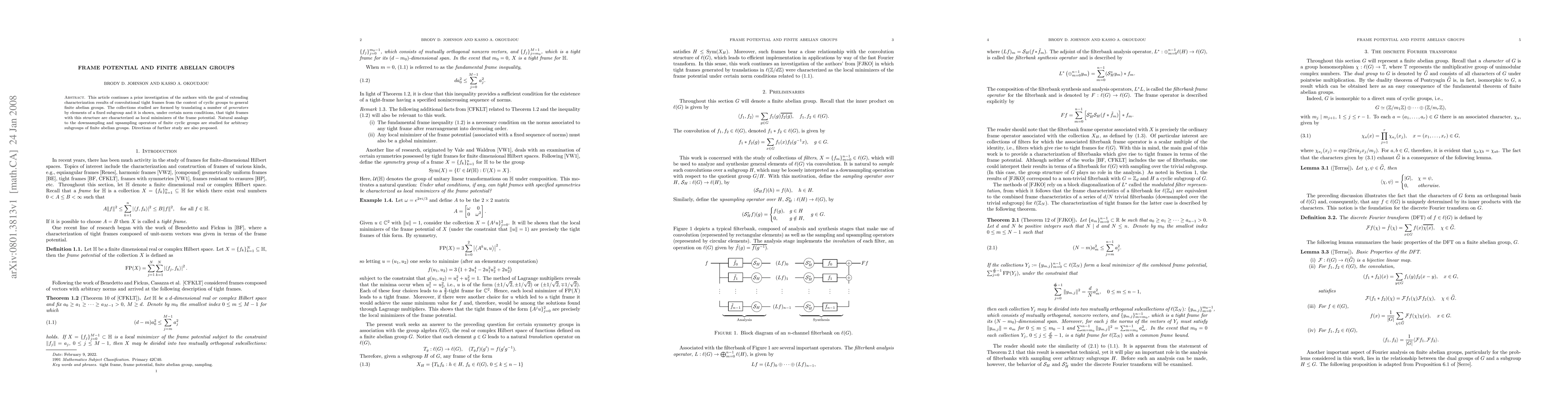 This paper extends characterization results of convolutional tight frames from cyclic groups to general finite abelian groups, showing that certain structured tight frames are local minimizers of the frame potential under specific norm conditions. It also explores analogs of downsampling and upsampling operators for arbitrary subgroups.