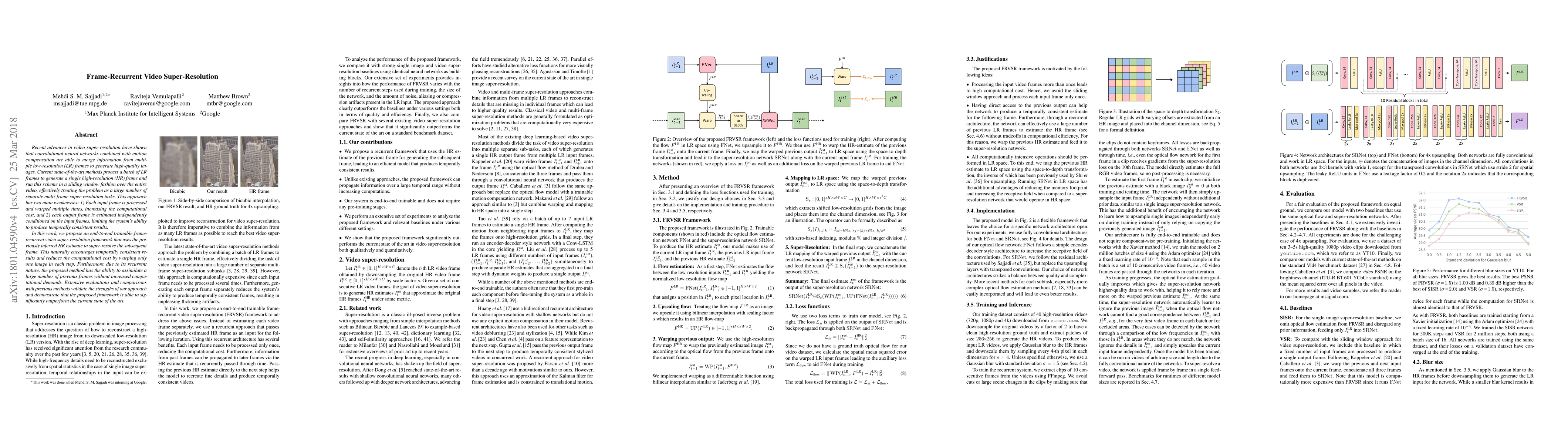 This paper proposes an end-to-end frame-recurrent video super-resolution framework that leverages previously inferred high-resolution frames to enhance subsequent frames, reducing computational costs and improving temporal consistency compared to existing methods. The recurrent approach allows assimilation of multiple frames without increased computational demands, outperforming current state-of-the-art techniques.