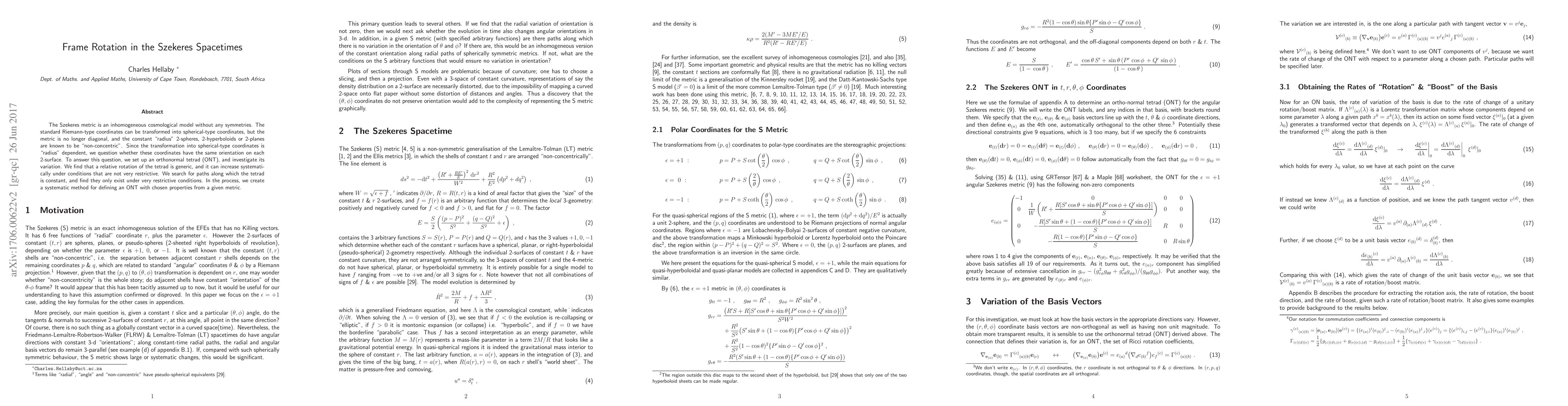 Researchers investigate the frame rotation in Szekeres spacetimes, finding that a relative rotation of an orthonormal tetrad is generic and can increase systematically under certain conditions.