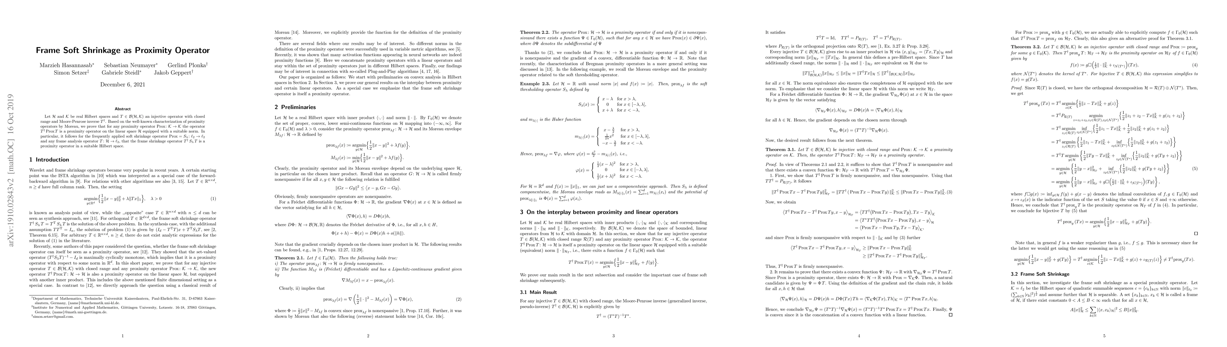 Let $\mathcal H$ and $\mathcal K$ be real Hilbert spaces and $T \in \mathcal{B} (\mathcal H,\mathcal K)$ an injective operator with closed range and Moore-Penrose inverse $T^\dagger$. Based on the well-known characterization of proximity operators by Moreau, we prove that for any proximity operator $\text{Prox} \colon \mathcal K \to \mathcal K$ the operator $T^\dagger \, \text{Prox} \, T$ is a proximity operator on the linear space $\mathcal H$ equipped with a suitable norm. In particular, it follows for the frequently applied soft shrinkage operator $\text{Prox} = S_{\lambda}\colon \ell_2 \rightarrow \ell_2$ and any frame analysis operator $T\colon \mathcal H \to \ell_2$, that the frame shrinkage operator $T^\dagger\, S_\lambda\, T$ is a proximity operator in a suitable Hilbert space.