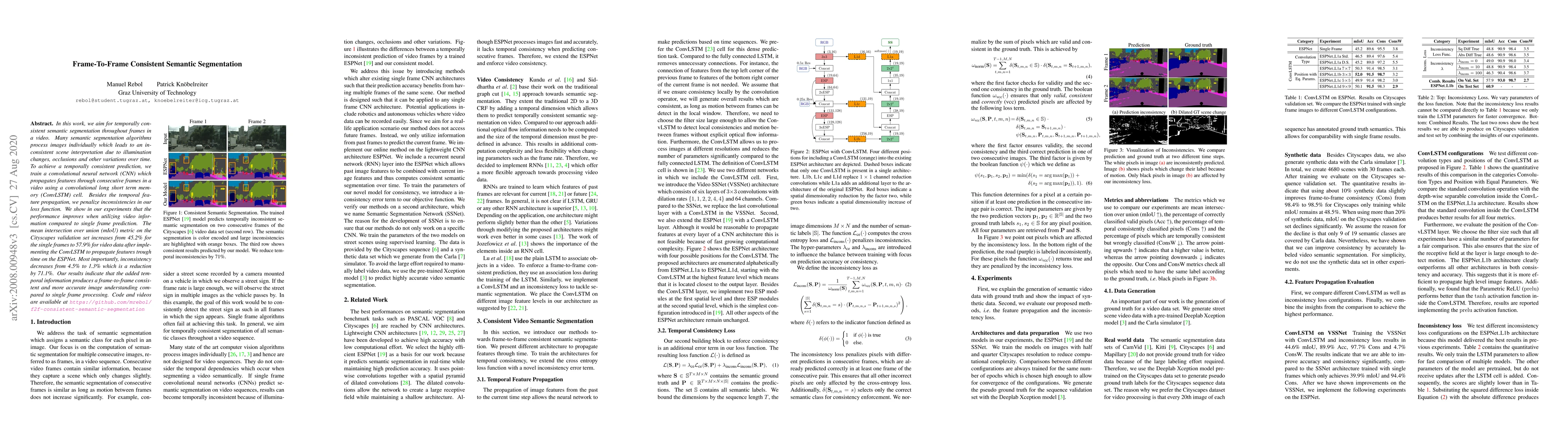 A new approach for semantic segmentation in videos achieves temporally consistent predictions through a convolutional neural network with temporal feature propagation, resulting in improved accuracy and reduced inconsistencies compared to single-frame processing.