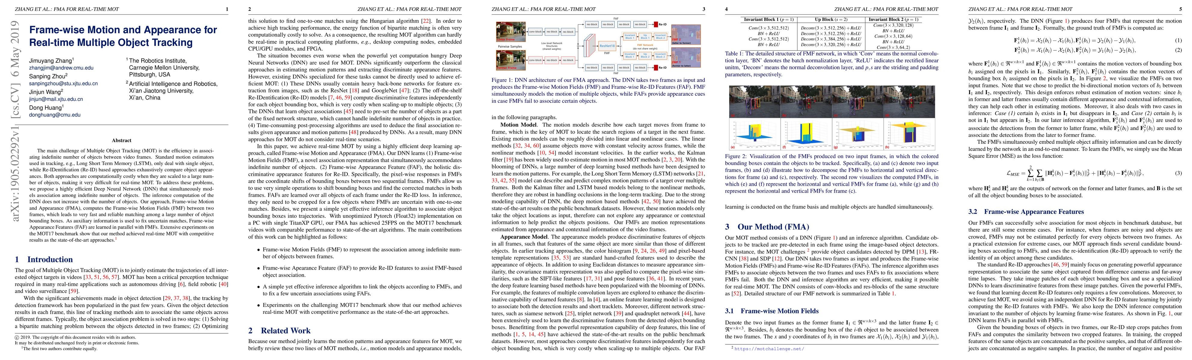 This paper proposes a Deep Neural Network (DNN) called Frame-wise Motion and Appearance (FMA) for real-time Multiple Object Tracking (MOT). The DNN efficiently models associations among a large number of objects without increasing computation with object count, achieving real-time performance and competitive results on the MOT17 benchmark.