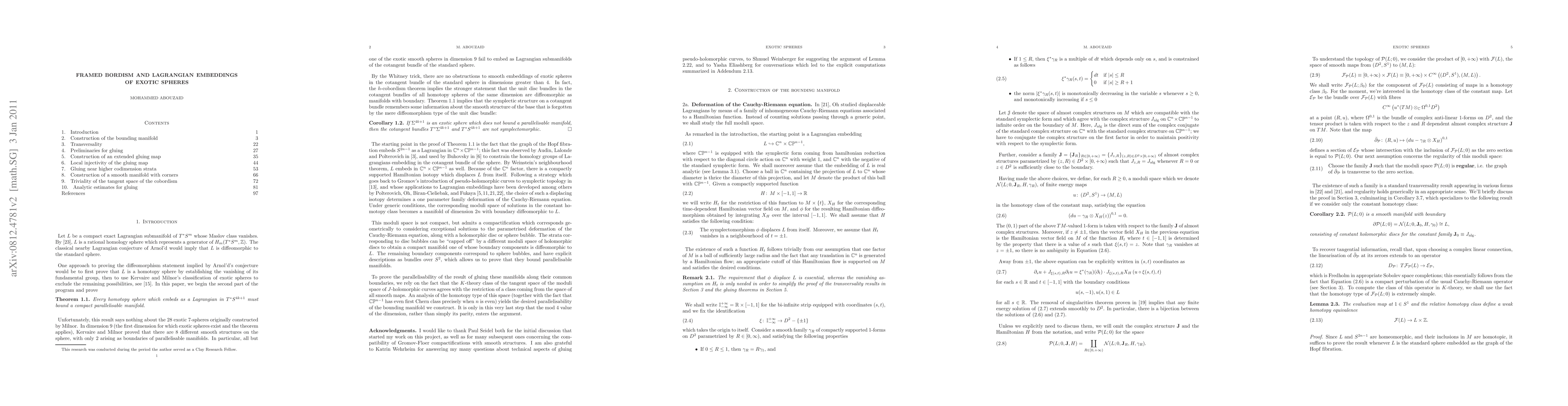 In dimensions congruent to 1 modulo 4, we prove that the cotangent bundle of an exotic sphere which does not bound a parallelisable manifold is not symplectomorphic to the cotangent bundle of the standard sphere. More precisely, we prove that such an exotic sphere cannot embed as a Lagrangian in the cotangent bundle of the standard sphere. The main ingredients of the construction are (1) the fact that the graph of the Hopf fibration embeds the standard sphere, and hence any Lagrangian which embeds in its cotangent bundle, as a displaceable Lagrangian in the product a symplectic vector space of the appropriate dimension with its complex projective space, and (2) a moduli space of solutions to a perturbed Cauchy-Riemann equation introduced by Gromov.