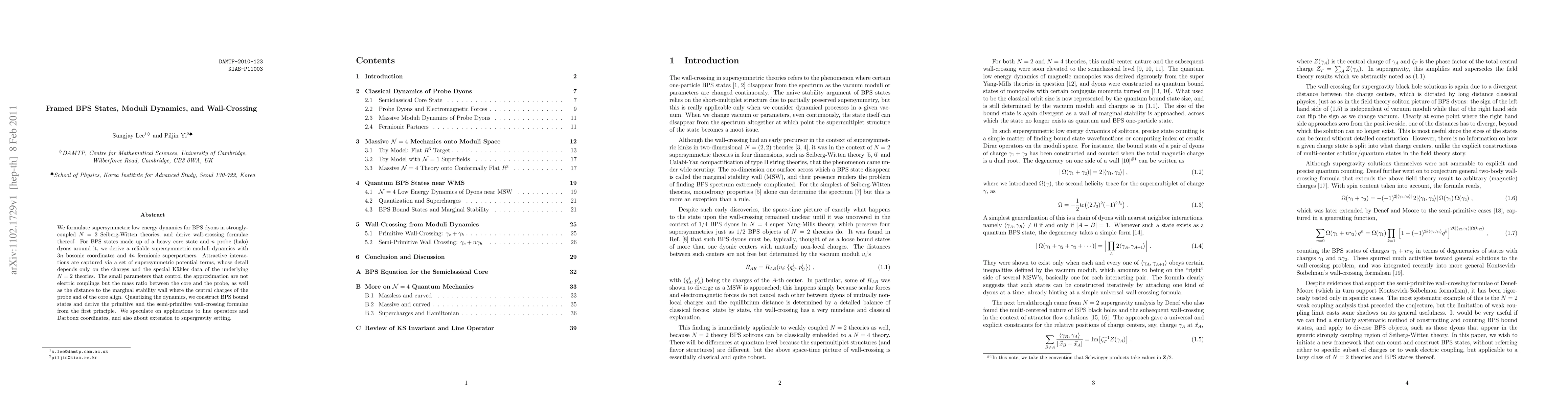 We formulate supersymmetric low energy dynamics for BPS dyons in strongly-coupled N=2 Seiberg-Witten theories, and derive wall-crossing formulae thereof. For BPS states made up of a heavy core state and n probe (halo) dyons around it, we derive a reliable supersymmetric moduli dynamics with 3n bosonic coordinates and 4n fermionic superpartners. Attractive interactions are captured via a set of supersymmetric potential terms, whose detail depends only on the charges and the special Kaehler data of the underlying N=2 theories. The small parameters that control the approximation are not electric couplings but the mass ratio between the core and the probe, as well as the distance to the marginal stability wall where the central charges of the probe and of the core align. Quantizing the dynamics, we construct BPS bound states and derive the primitive and the semi-primitive wall-crossing formulae from the first principle. We speculate on applications to line operators and Darboux coordinates, and also about extension to supergravity setting.