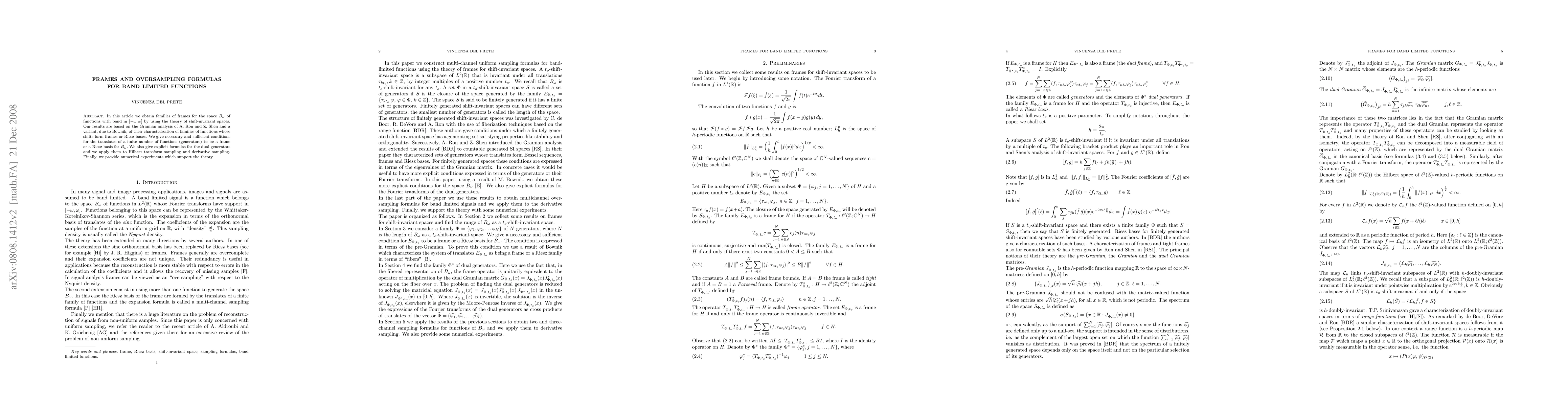 Researchers developed a framework for creating frames for band-limited functions using shift-invariant spaces and Gramian analysis. They provide necessary conditions and formulas to determine if translated functions form frames or Riesz bases for these spaces.