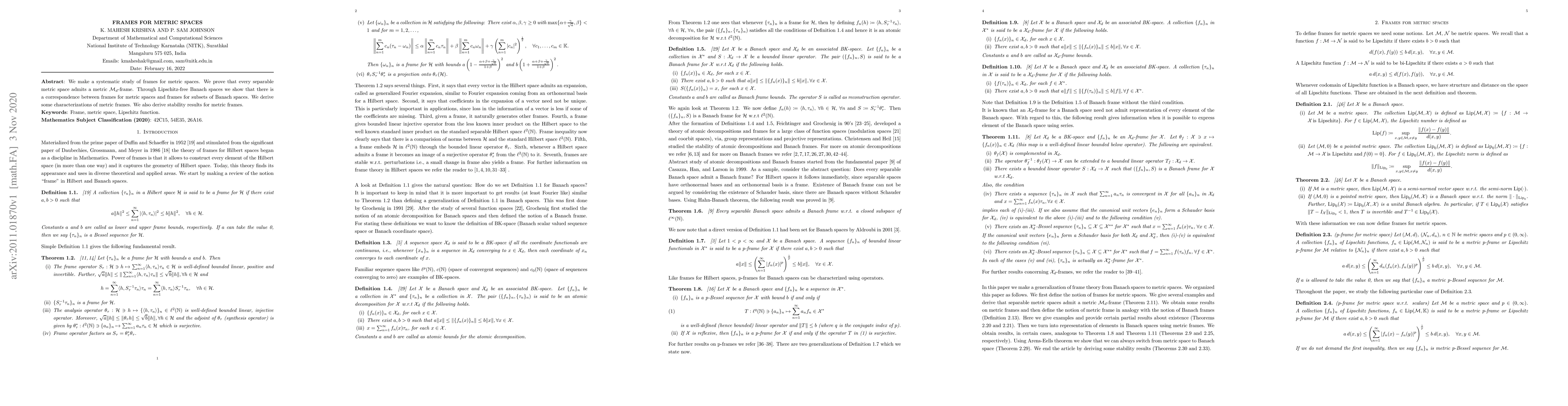 Researchers show that every separable metric space can have a frame, and discover a connection between frames in metric spaces and Banach spaces, leading to new characterizations and stability results for frames.