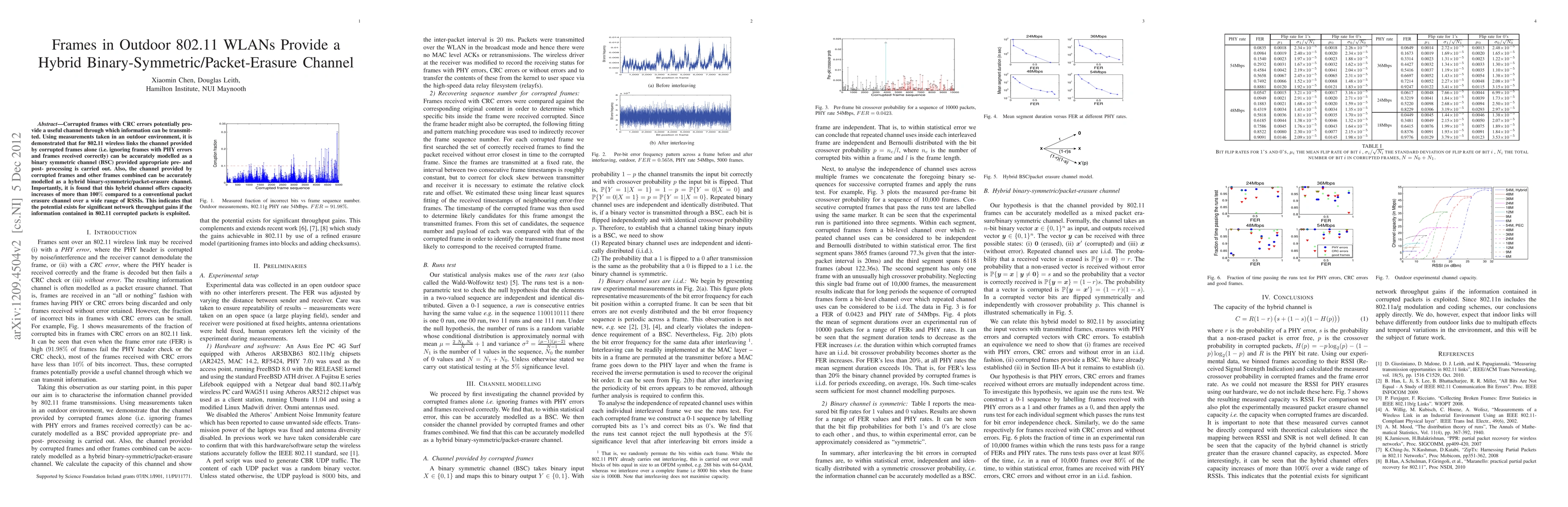 This paper demonstrates that corrupted frames in outdoor 802.11 WLANs can be modeled as a binary symmetric channel, while a combination of corrupted and correctly received frames forms a hybrid binary symmetric/packet erasure channel, offering over 100% capacity increase compared to conventional channels. This suggests substantial network throughput gains by utilizing information from corrupted packets.