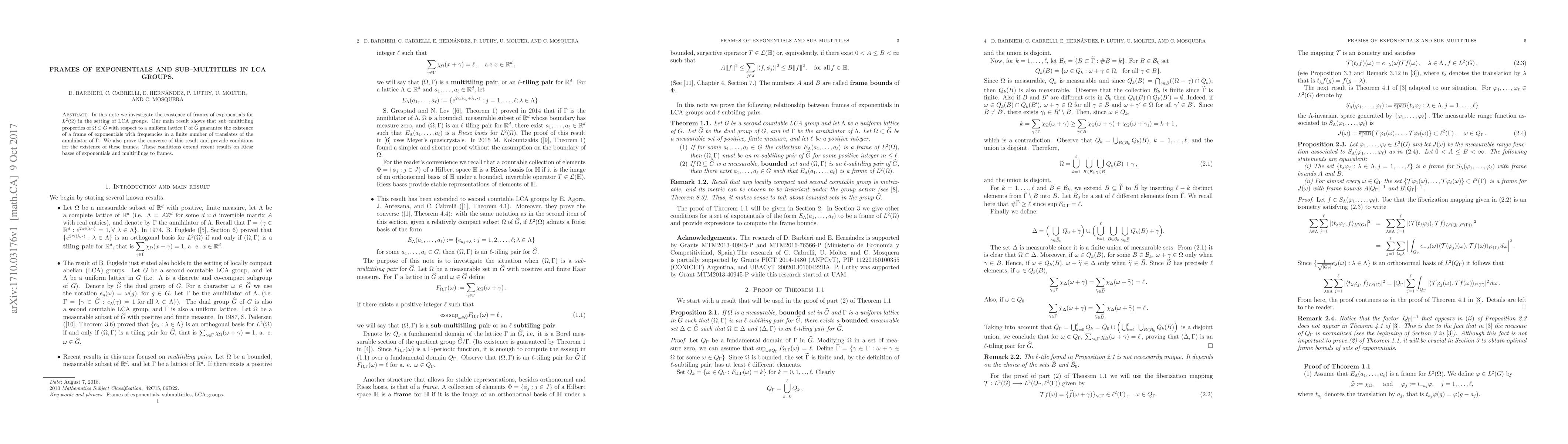 This paper explores the existence of frames of exponentials in $L^2(\Omega)$ for locally compact abelian (LCA) groups, demonstrating that sub-multitiling properties of $\Omega$ relative to a uniform lattice $\Gamma$ ensure the existence of such frames with frequencies in specific translates of the annihilator of $\Gamma$. The authors also prove the converse and extend conditions for frame existence beyond Riesz bases.