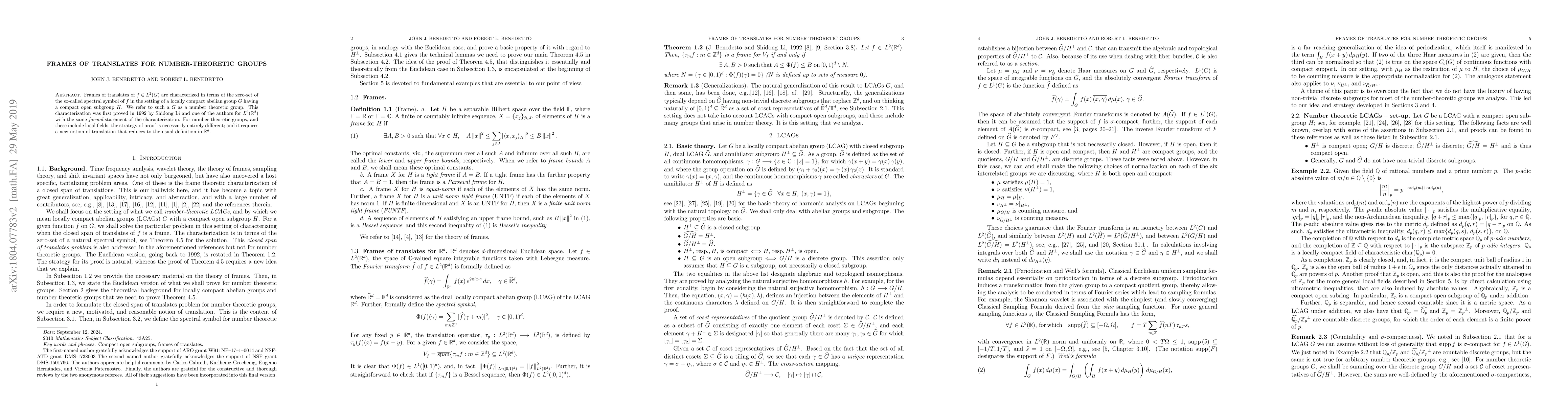 This research characterizes frames of translates in L^2(G) for number-theoretic groups using the zero-set of the spectral symbol of f, distinct from previous methods used for R^d. It introduces a new translation notion applicable to local fields and beyond.