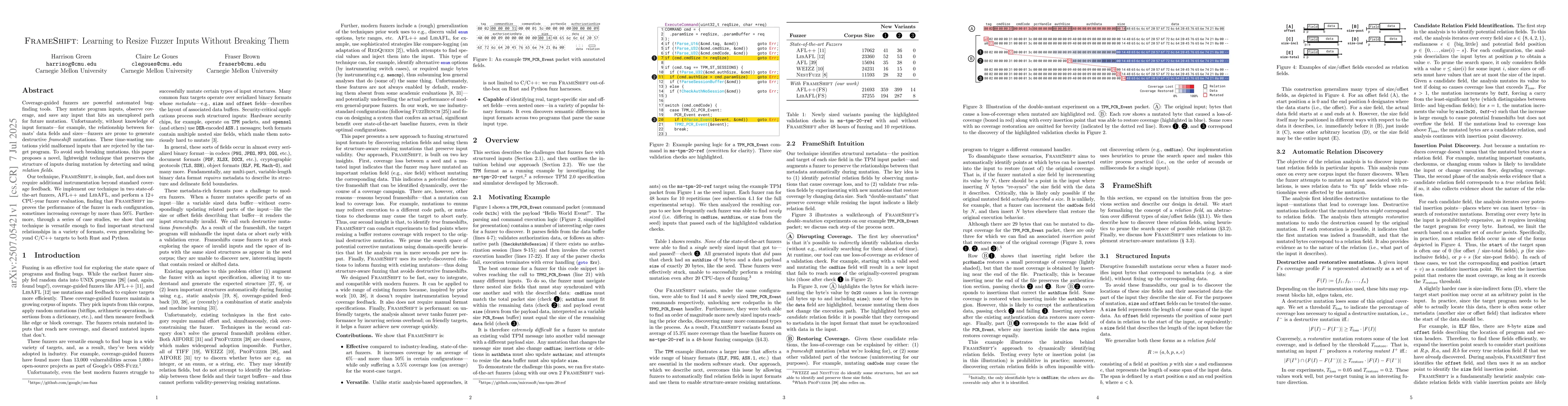 Coverage-guided fuzzers are powerful automated bug-finding tools. They mutate program inputs, observe coverage, and save any input that hits an unexplored path for future mutation. Unfortunately, without knowledge of input formats--for example, the relationship between formats' data fields and sizes--fuzzers are prone to generate destructive frameshift mutations. These time-wasting mutations yield malformed inputs that are rejected by the target program. To avoid such breaking mutations, this paper proposes a novel, lightweight technique that preserves the structure of inputs during mutation by detecting and using relation fields. Our technique, FrameShift, is simple, fast, and does not require additional instrumentation beyond standard coverage feedback. We implement our technique in two state-of-the-art fuzzers, AFL++ and LibAFL, and perform a 12+ CPU-year fuzzer evaluation, finding that FrameShift improves the performance of the fuzzer in each configuration, sometimes increasing coverage by more than 50%. Furthermore, through a series of case studies, we show that our technique is versatile enough to find important structural relationships in a variety of formats, even generalizing beyond C/C++ targets to both Rust and Python.