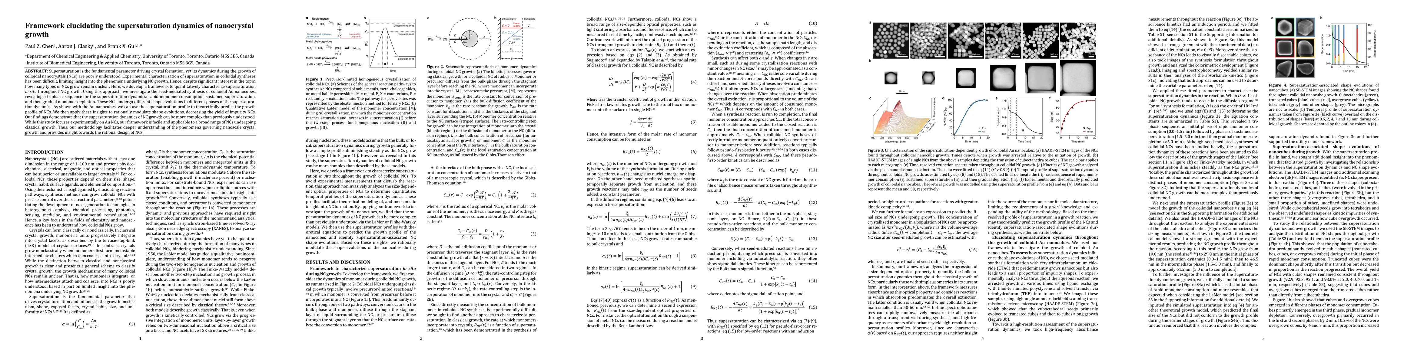 Supersaturation is the fundamental parameter driving crystal formation, yet its dynamics during the growth of colloidal nanocrystals (NCs) are poorly understood. Experimental characterization of supersaturation in colloidal syntheses has been difficult, limiting insight into the phenomena underlying NC growth. Hence, despite significant interest in the topic, how many types of NCs grow remain unclear. Here, we develop a framework to quantitatively characterize supersaturation in situ throughout NC growth. Using this approach, we investigate the seed-mediated synthesis of colloidal Au nanocubes, revealing a triphasic sequence for the supersaturation dynamics: rapid monomer consumption, sustained supersaturation, and then gradual monomer depletion. These NCs undergo different shape evolutions in different phases of the supersaturation dynamics. As shown with the Au nanocubes, we can use the supersaturation profile to theoretically predict the growth profile of NCs. We then apply these insights to rationally modulate shape evolutions, decreasing the yield of impurity NCs. Our findings demonstrate that the supersaturation dynamics of NC growth can be more complex than previously understood. While this study focuses experimentally on Au NCs, our framework is facile and applicable to a broad range of NCs undergoing classical growth. Thus, our methodology facilitates deeper understanding of the phenomena governing nanoscale crystal growth and provides insight towards the rational design of NCs.