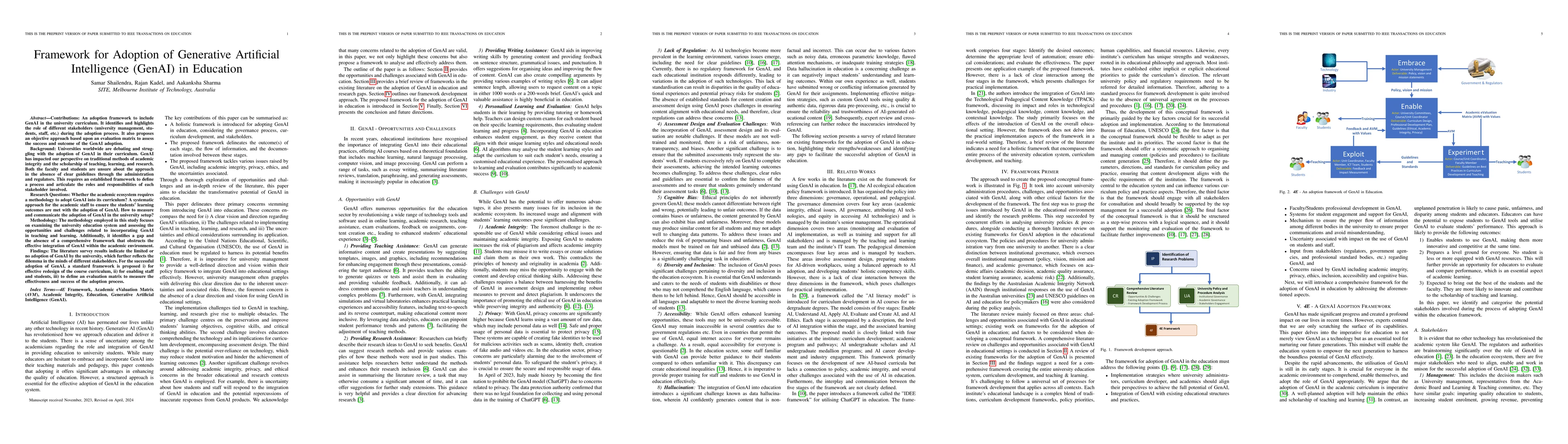 Contributions: An adoption framework to include GenAI in the university curriculum. It identifies and highlights the role of different stakeholders (university management, students, staff, etc.) during the adoption process. It also proposes an objective approach based upon an evaluation matrix to assess the success and outcome of the GenAI adoption. Background: Universities worldwide are debating and struggling with the adoption of GenAI in their curriculum. Both the faculty and students are unsure about the approach in the absence of clear guidelines through the administration and regulators. This requires an established framework to define a process and articulate the roles and responsibilities of each stakeholder involved. Research Questions: Whether the academic ecosystem requires a methodology to adopt GenAI into its curriculum? A systematic approach for the academic staff to ensure the students' learning outcomes are met with the adoption of GenAI. How to measure and communicate the adoption of GenAI in the university setup? Methodology: The methodology employed in this study focuses on examining the university education system and assessing the opportunities and challenges related to incorporating GenAI in teaching and learning. Additionally, it identifies a gap and the absence of a comprehensive framework that obstructs the effective integration of GenAI within the academic environment. Findings: The literature survey results indicate the limited or no adoption of GenAI by the university, which further reflects the dilemma in the minds of different stakeholders. For the successful adoption of GenAI, a standard framework is proposed i) for effective redesign of the course curriculum, ii) for enabling staff and students, iii) to define an evaluation matrix to measure the effectiveness and success of the adoption process.