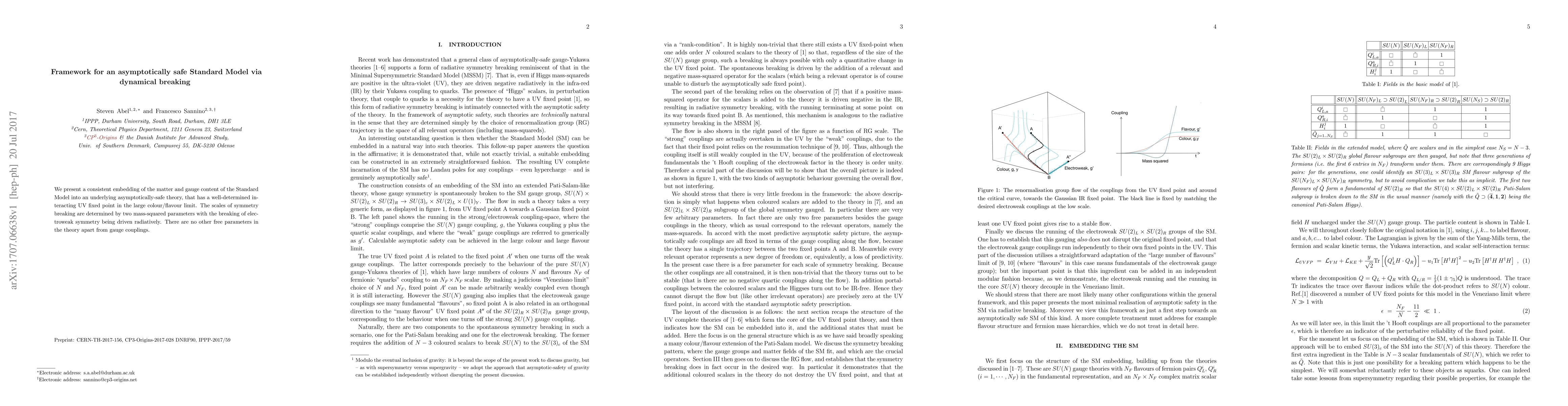 We present a consistent embedding of the matter and gauge content of the Standard Model into an underlying asymptotically-safe theory, that has a well-determined in- teracting UV fixed point in the large colour/flavour limit. The scales of symmetry breaking are determined by two mass-squared parameters with the breaking of elec- troweak symmetry being driven radiatively. There are no other free parameters in the theory apart from gauge couplings.